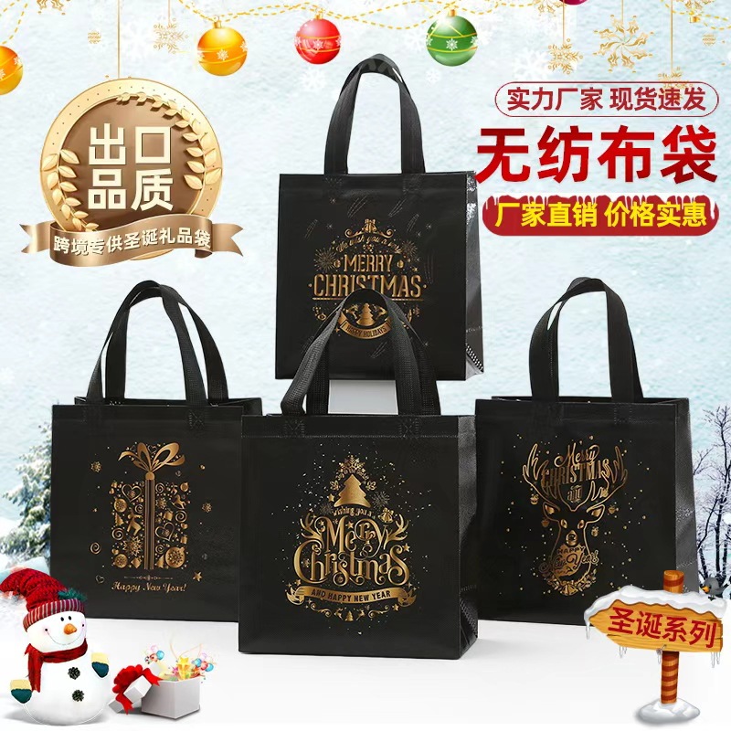 跨境新品无纺布袋圣诞黑色系印花礼品袋节日派对礼物装饰包装袋