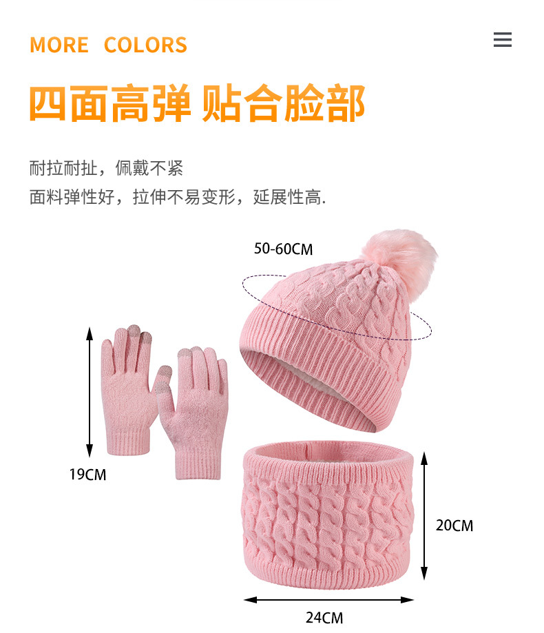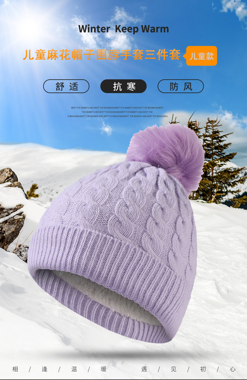 子供帽子手袋マフラーセット冬かわいい赤ちゃん厚いニット毛玉毛糸保温帽子クロスボーダー卸売り