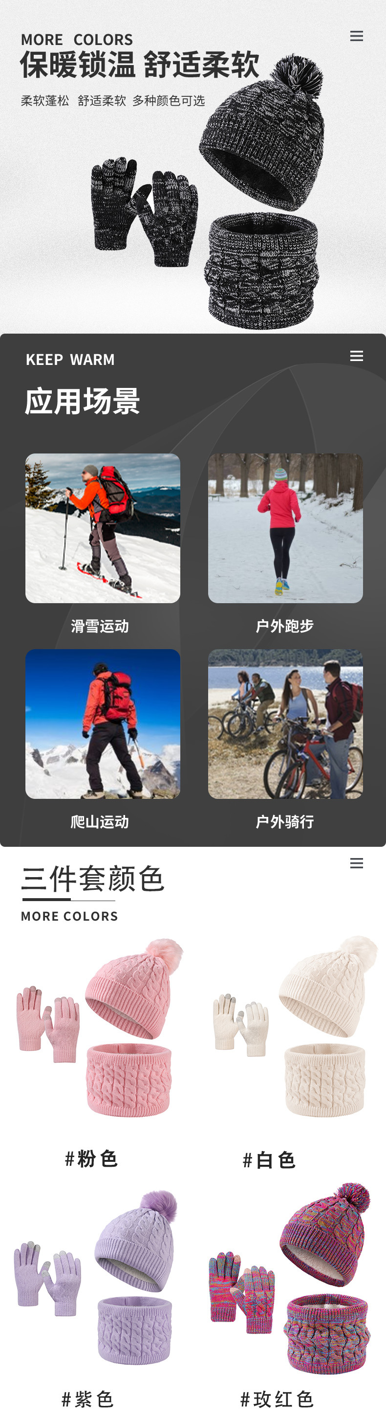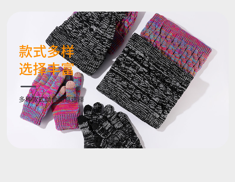 外国貿易秋冬保温帽子マフラー手袋三点セット厚手豚革つなぎ手袋防寒毛糸帽子男