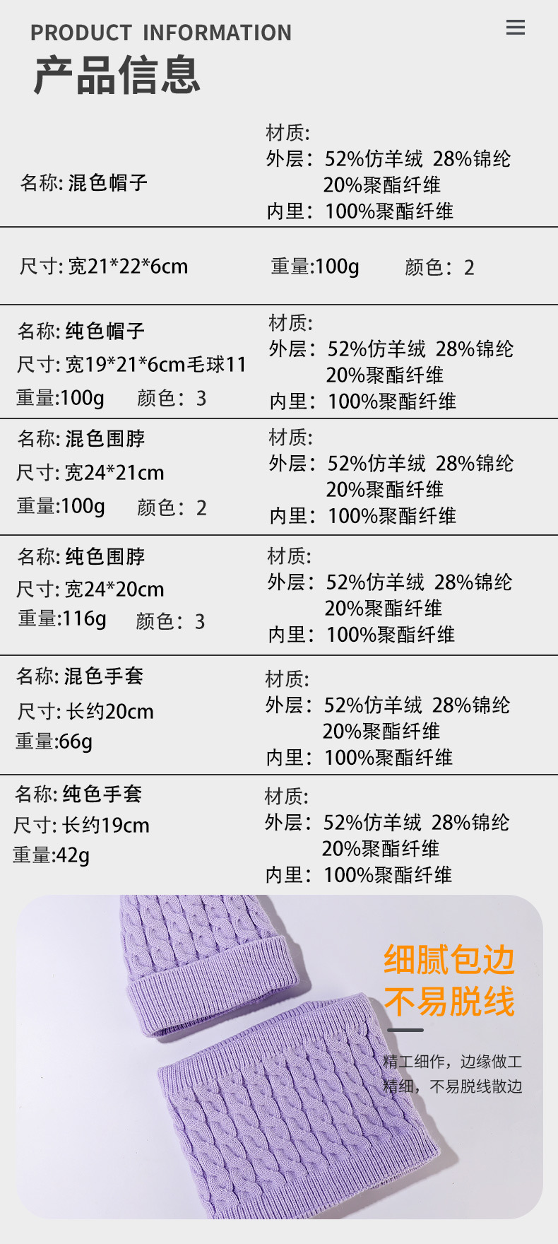 組み合わせ方法 スカーフ、帽子、手袋の3点セット