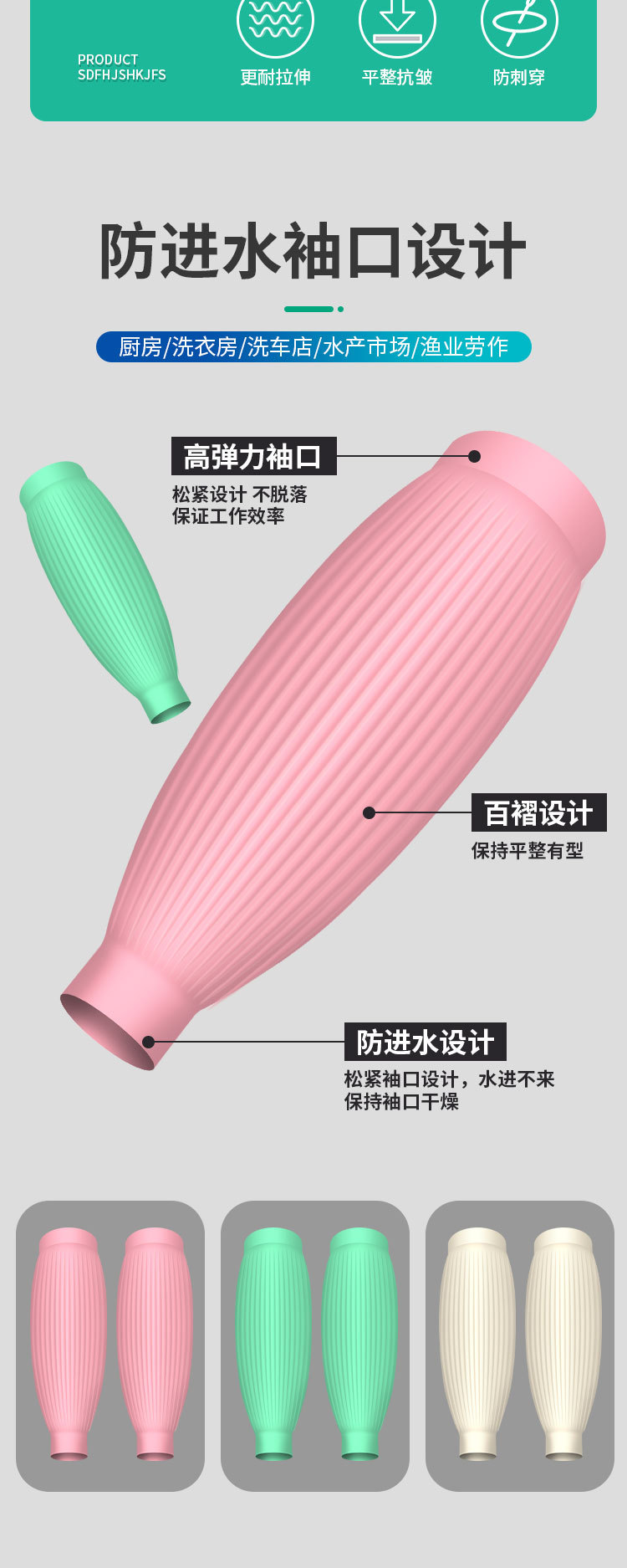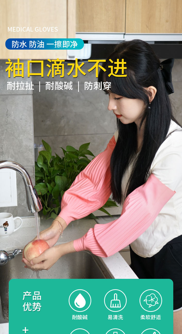 乳胶防水袖套防逆流耐油防污居家日用厨房洗碗擦玻璃水产套袖防护