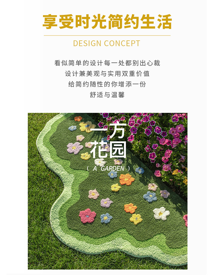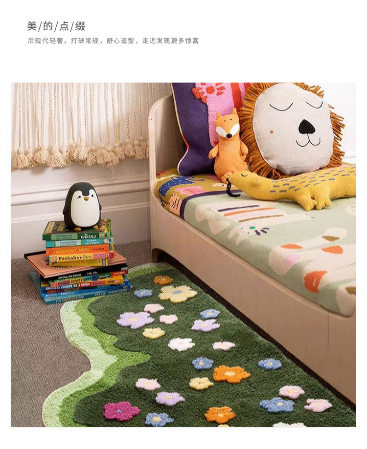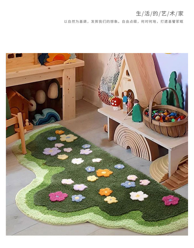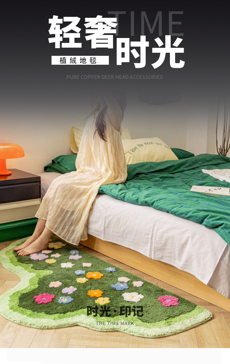 Ins風植毛絨毯彩花緑地寝室ベッドサイド滑り止め足マット家庭用耐摩耗性耐汚れ性柔らかい絨毯吸水マット