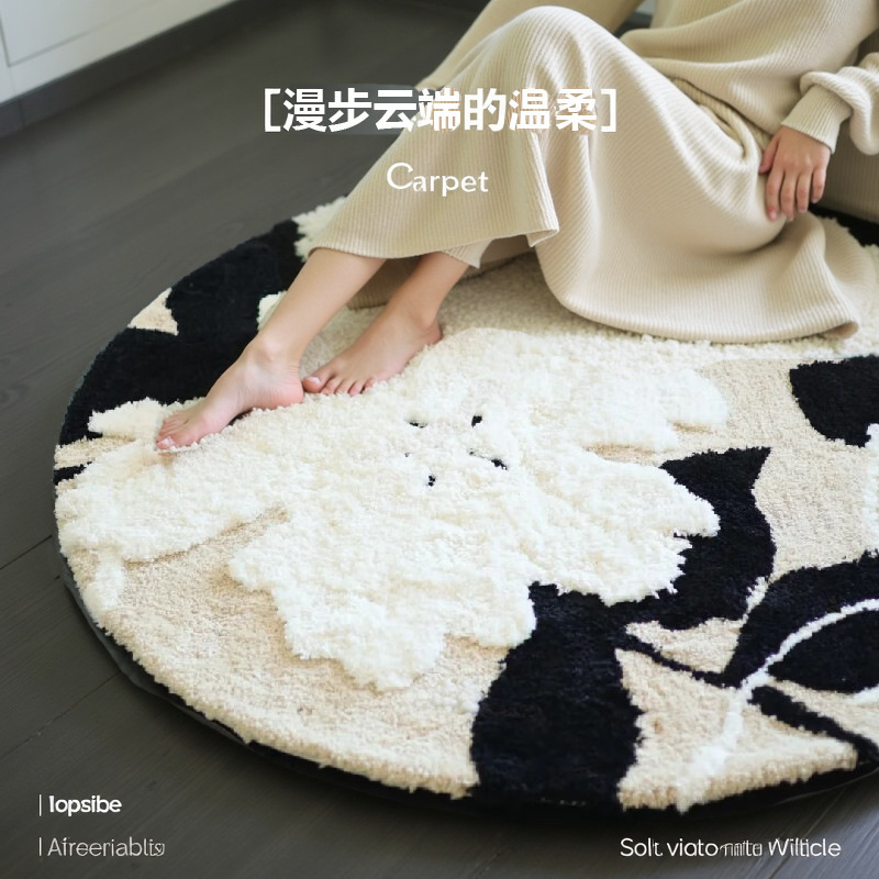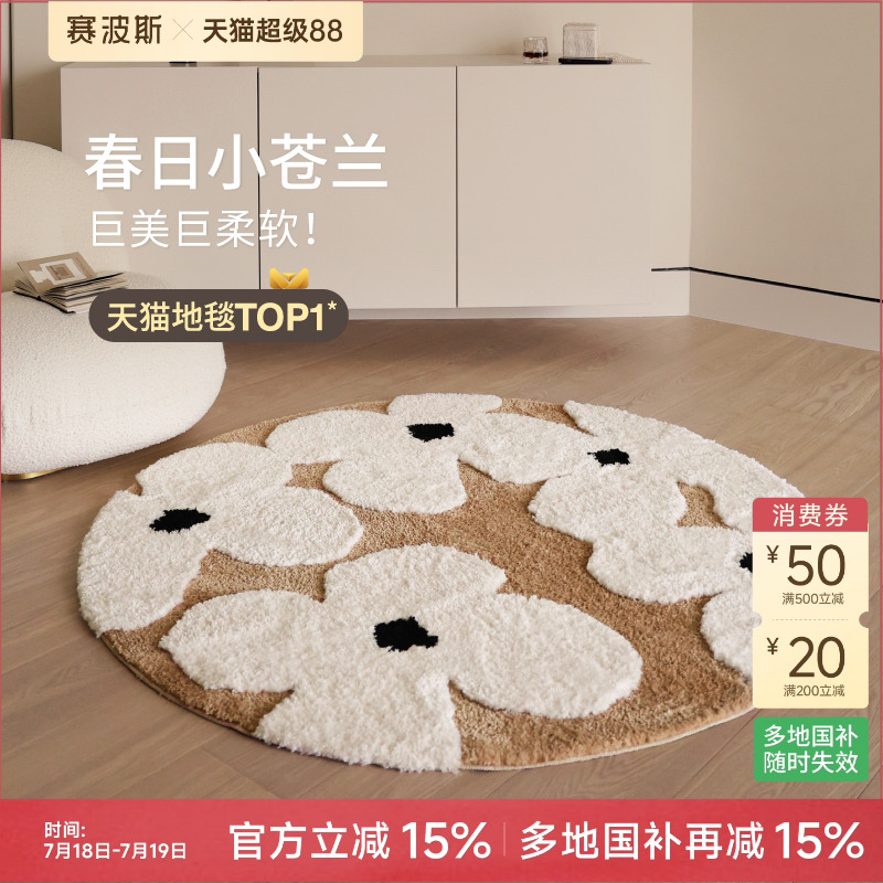 赛波斯小苍兰地毯花圆形法式高级奶油柔软卧室客厅衣帽间青山美宿