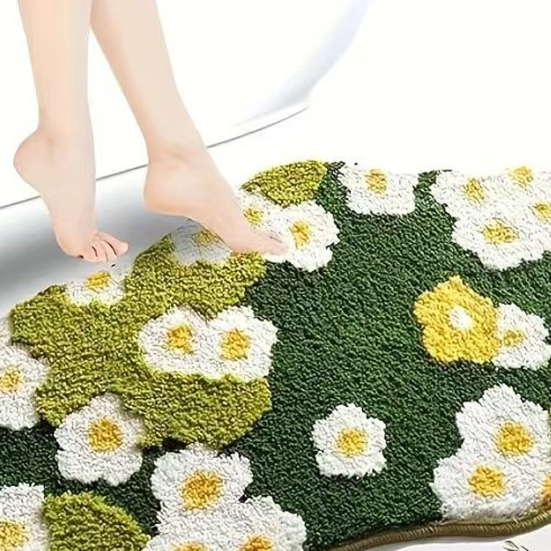 モスカーペット、小さな新鮮な花柄のバスルーム滑り止めマット、厚みのある植毛カーペット、フルカバーベッドルームルーム装飾ブランケット