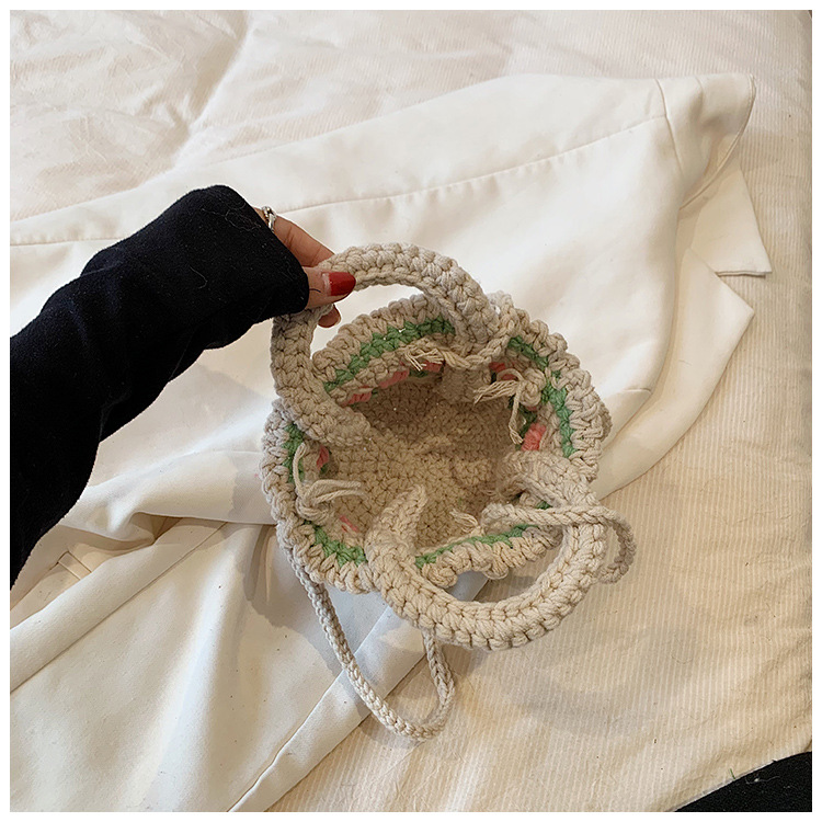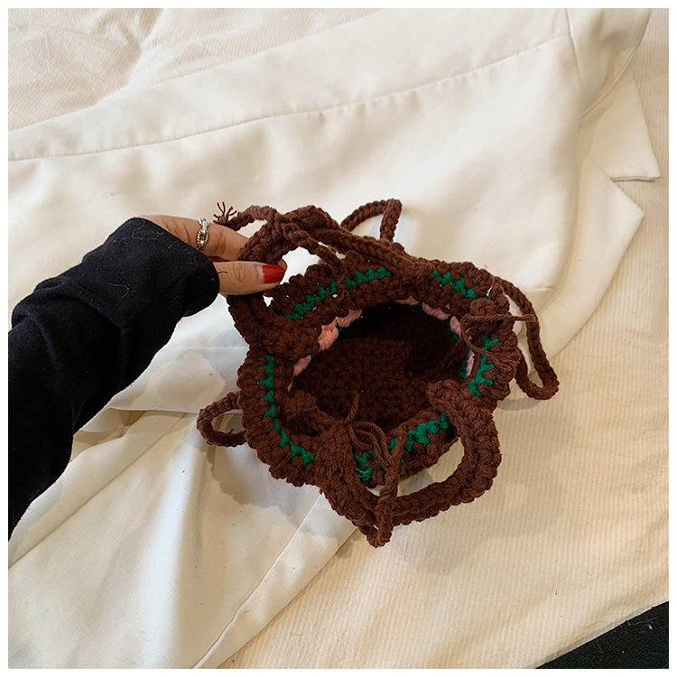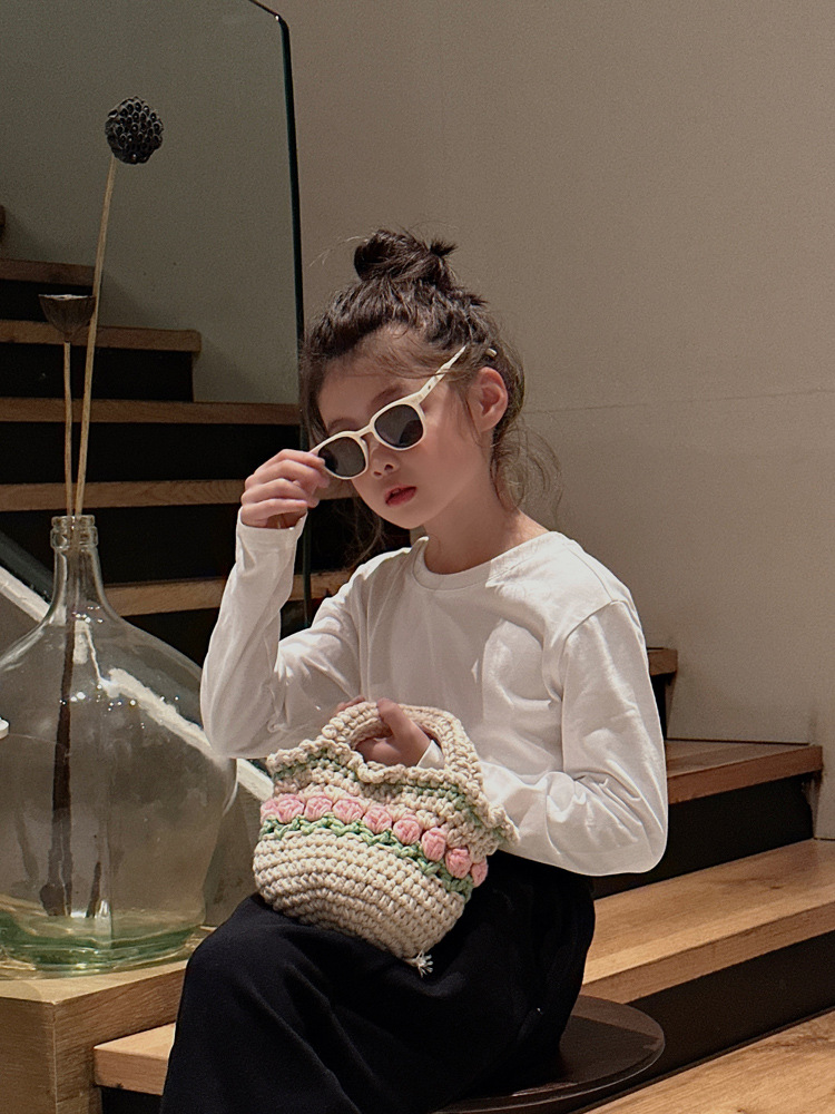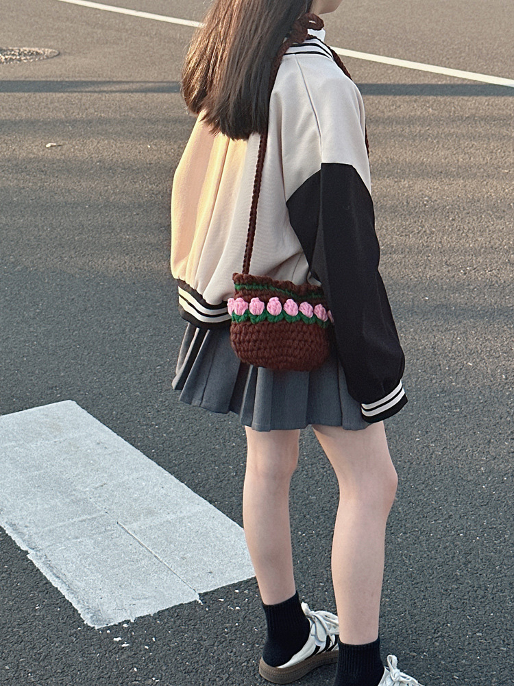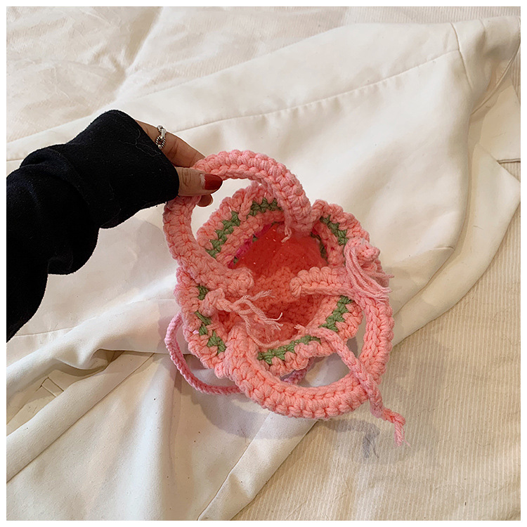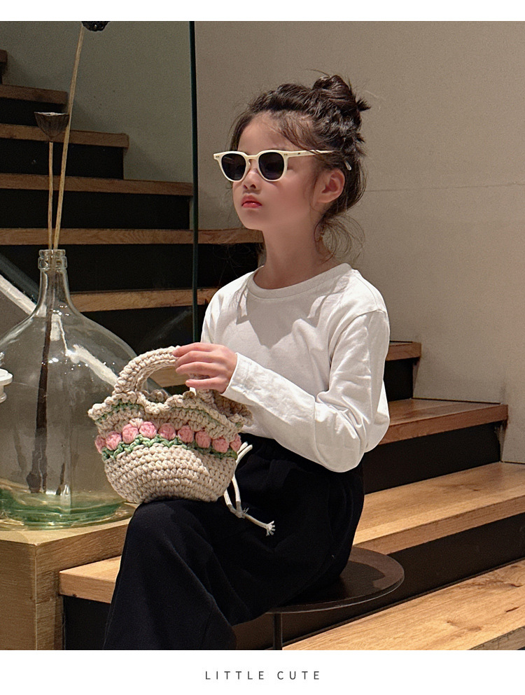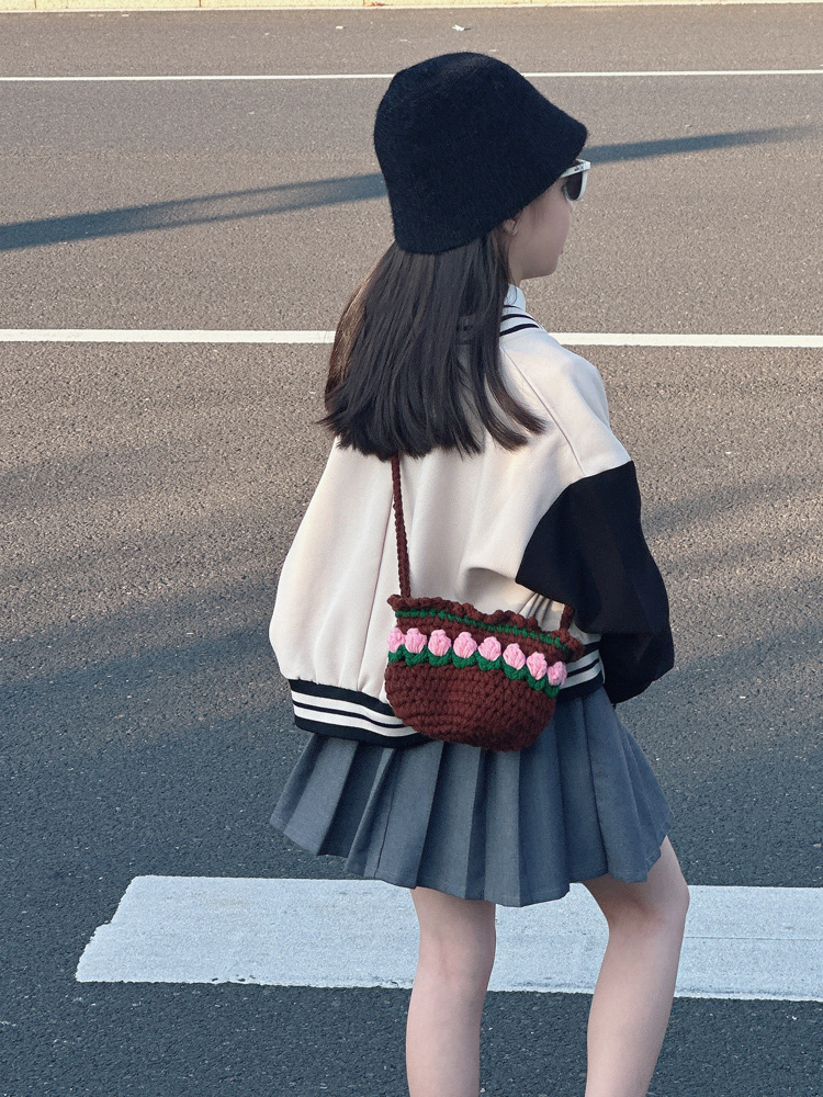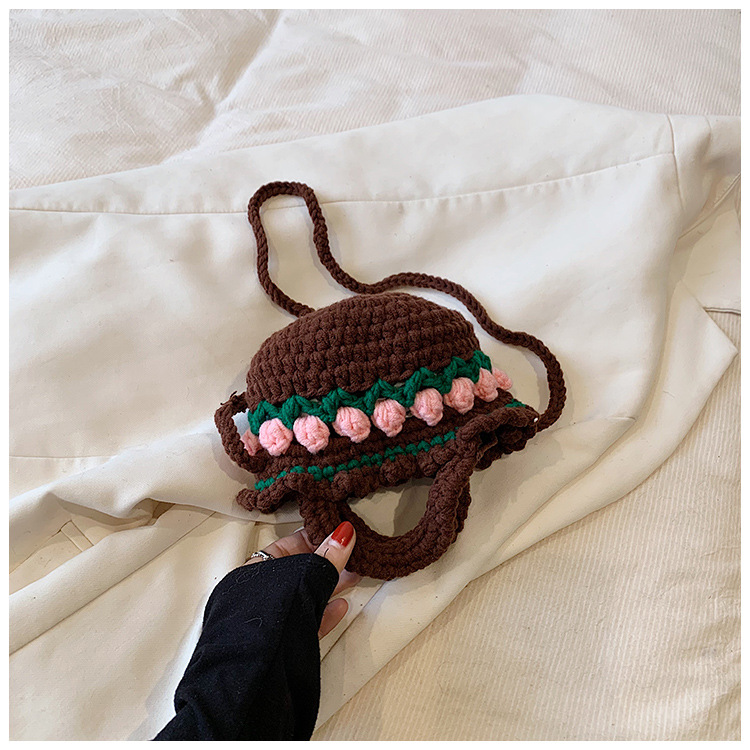 チューリップの花の手提げの子供の小さい包みの王女の毛糸はかわいい新型の女の子の肩の野菜のかごの包みを編みます。