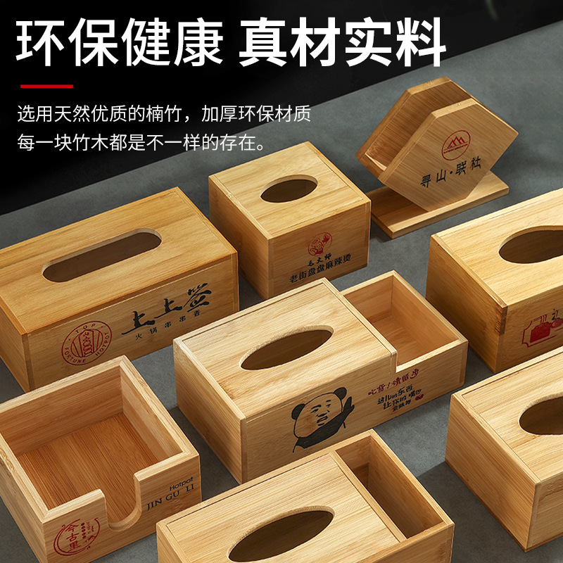 広告ティッシュボックス竹ティッシュボックスナプキンボックス収納レストランホテルティッシュボックス印刷可能なロゴ紙引き出し
