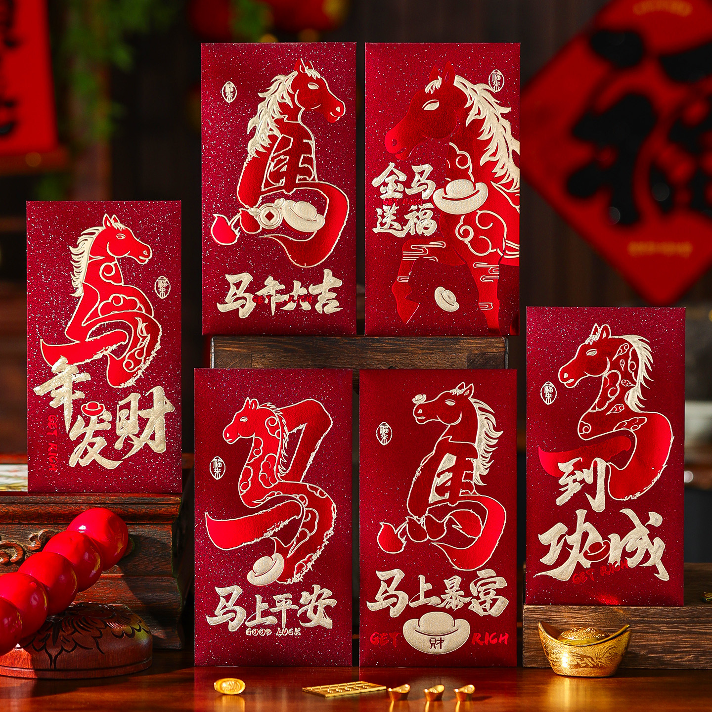 2026新款新年马年红包袋春节过年压岁千元加厚创意卡通利是封包2026马年红包创意金葱磨砂卡通生肖百元千元利是封过新年压岁包袋
