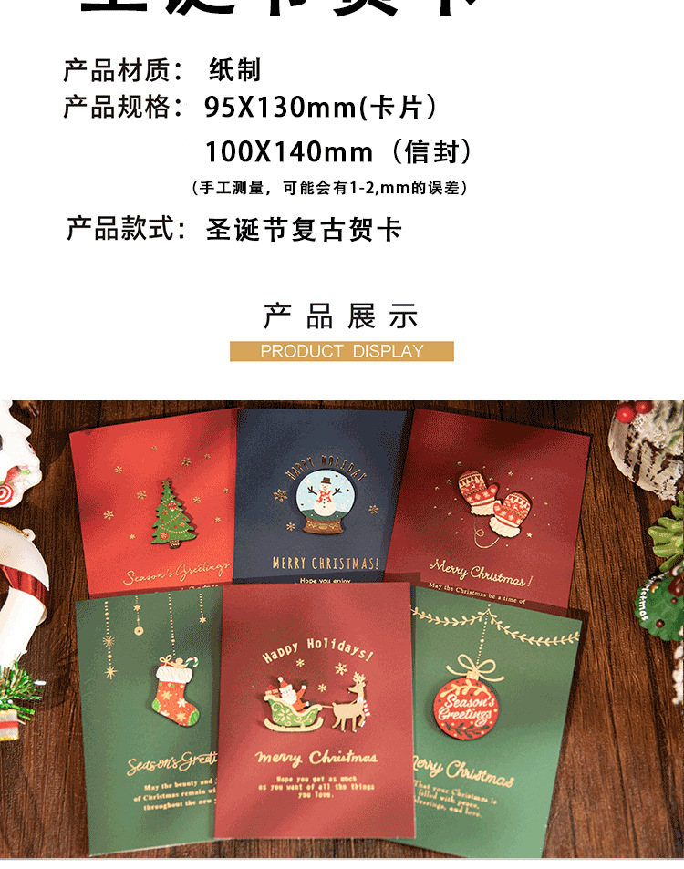 Senyu Ye レトロクリスマスグリーティングカードセット祝福ビジネス告白クリスマスイブホリデーシンプルな小さな新鮮なグリーティングカード