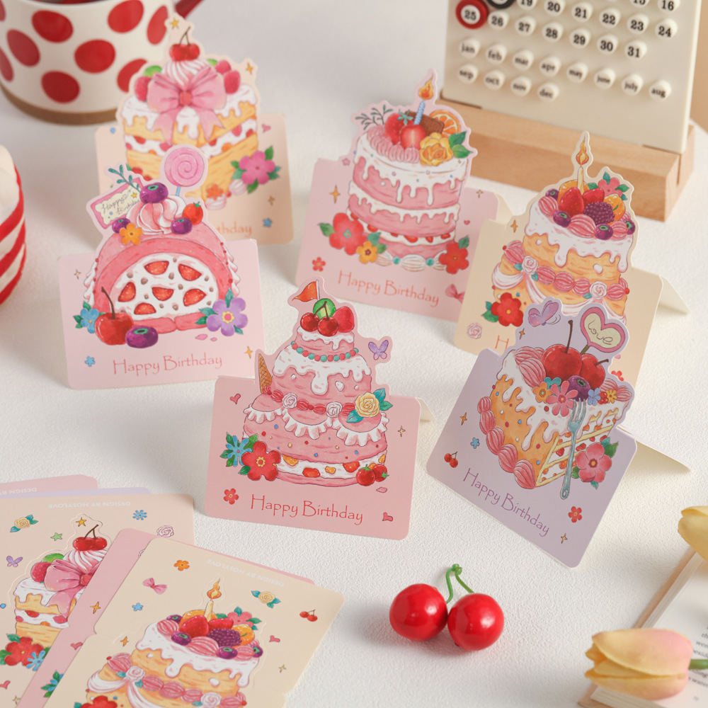ニャー誕生日ケーキグリーティングカード小さなカードハッピーバースデー祝福グリーティングカードシンプルなタグ花材フラワーショップ
