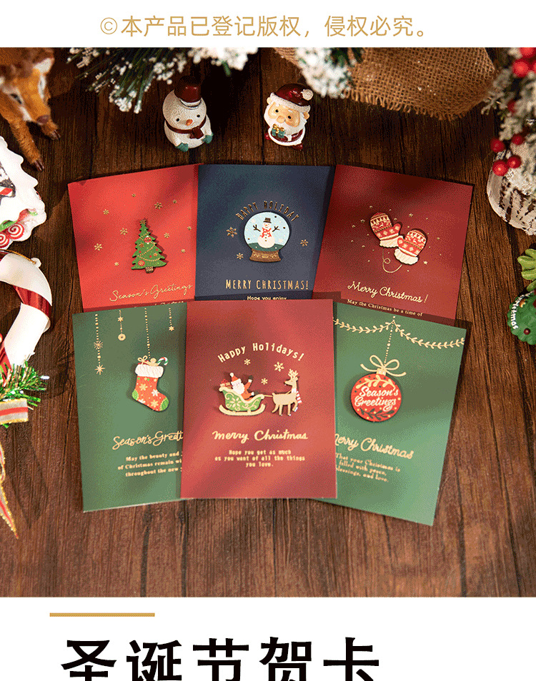 洗練された高級油絵風正方形クリスマスカード小清新創造はがきメッセージ祝福誕生日カード