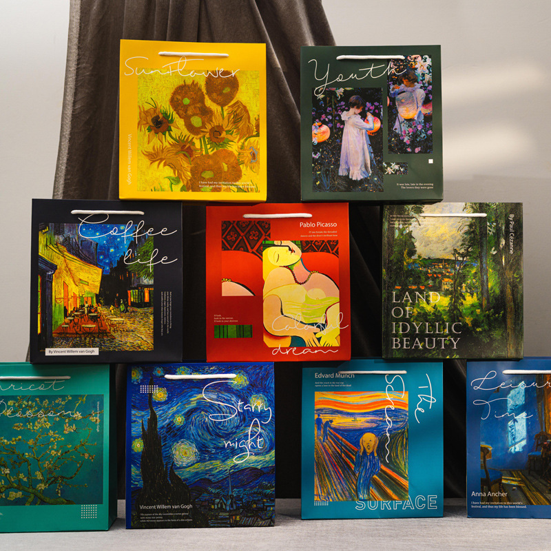 ニャンコ名画シリーズギフトバッグかわいい漫画包装紙袋手提げ袋ins祭りプレゼント包装袋