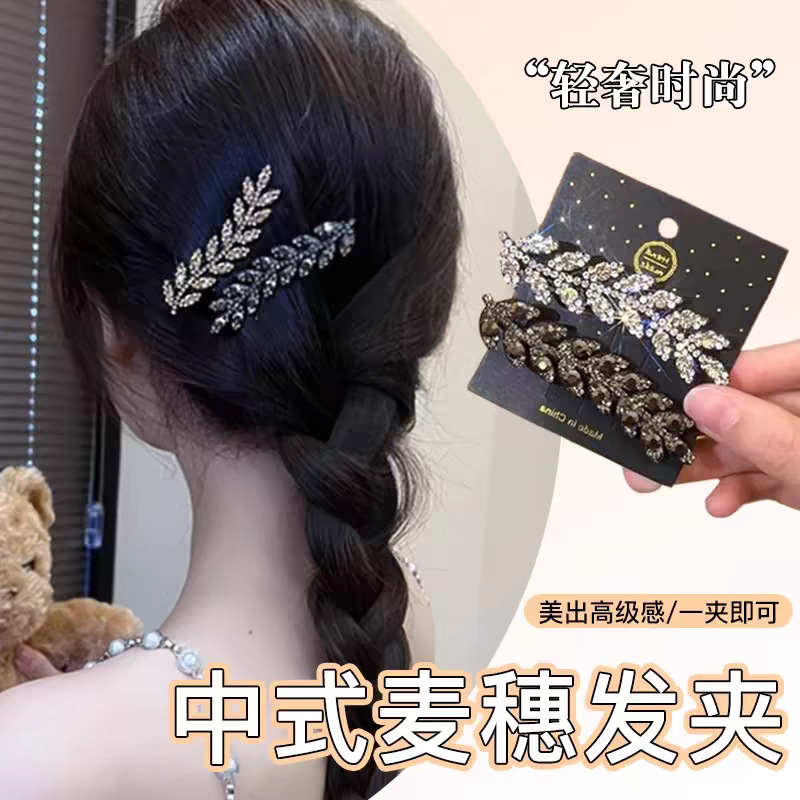 ラインストーンの麦の穂のヘアピンの女性のサイドクリップの前髪の気質のヘアピンの額の砕毛の一字のクリップの髪飾りのヘアピン