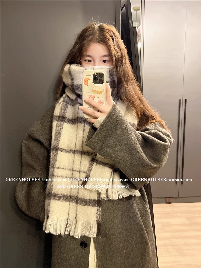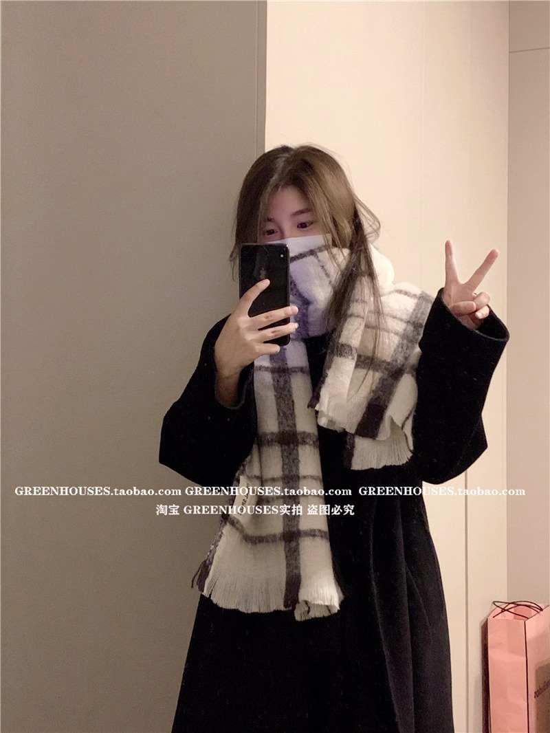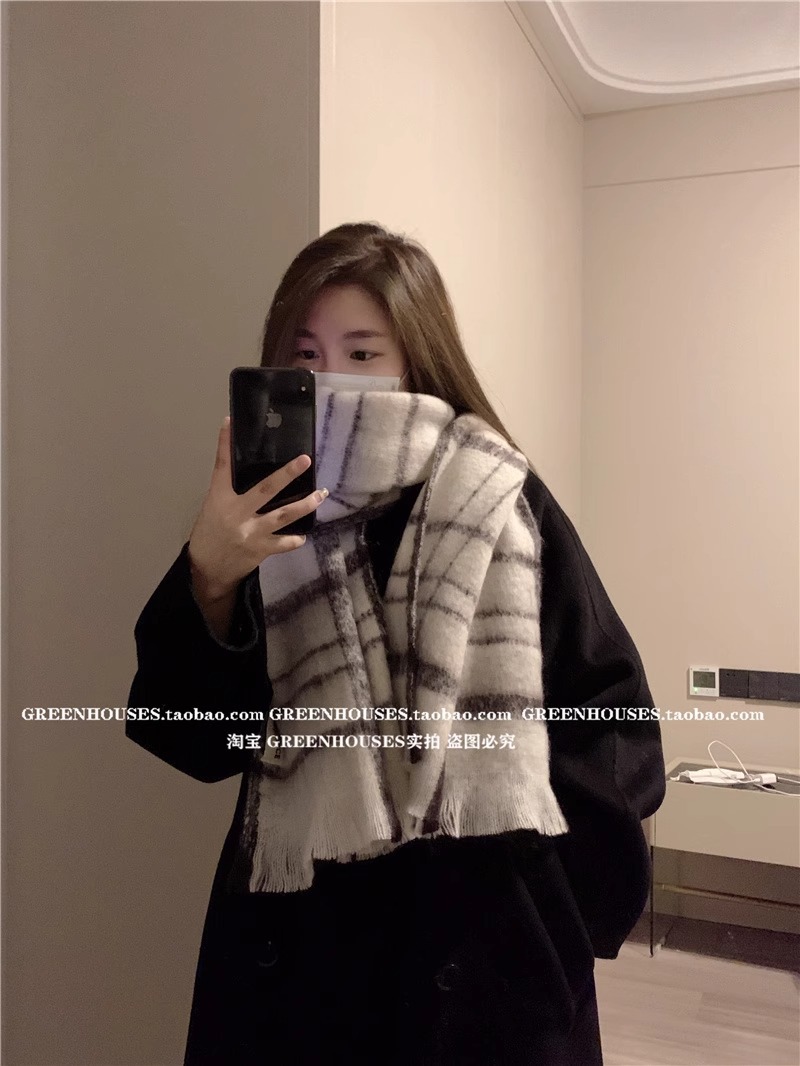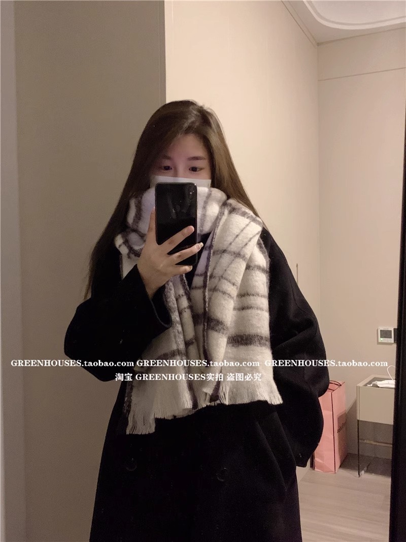 マフラーの冬の女性の高級感2023の新型はカシミヤの縞模様に似せて学生に保温して首を囲むマントの潮を厚くします。