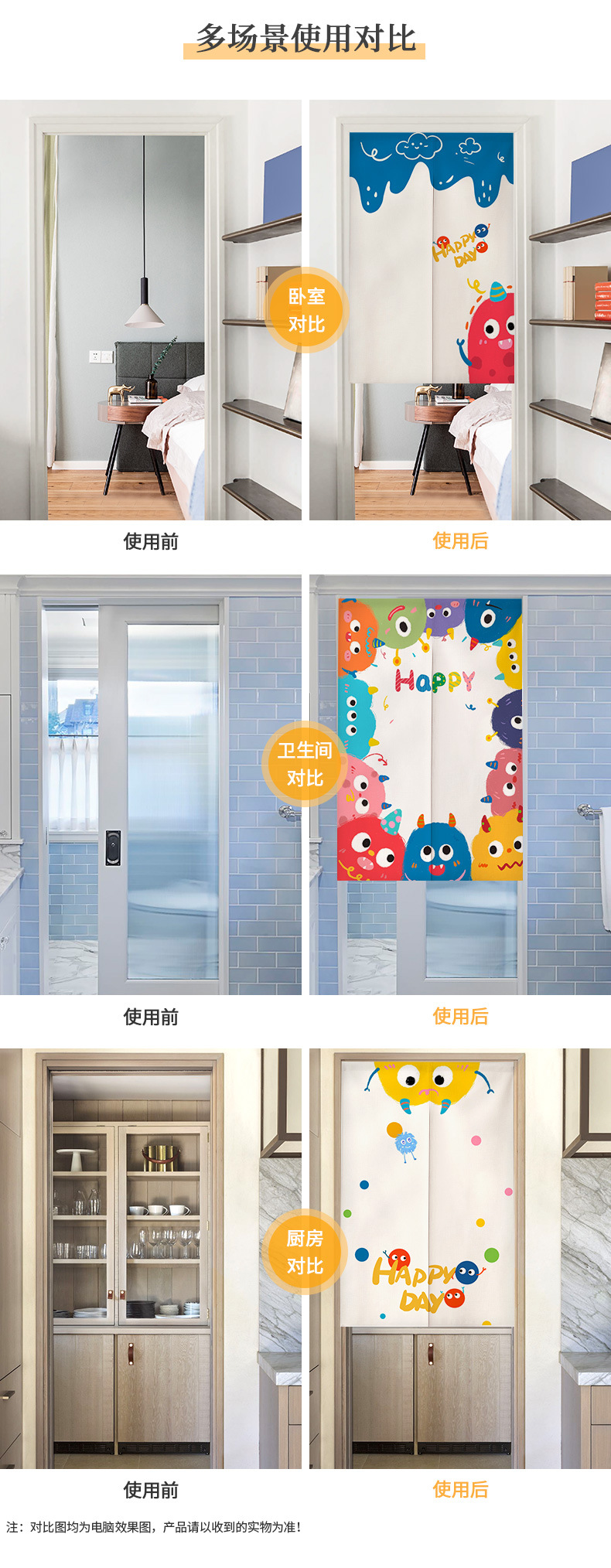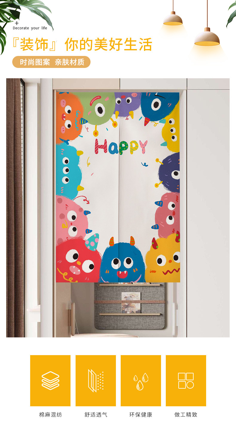 漫画かわいい布芸のれん寝室装飾子供部屋ハーフカーテンinsキッチン仕切りトイレシェード玄関カーテン