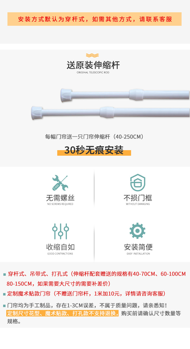 2025新型ins布芸のれんはカーテンを遮断して穴を開けない家庭用寝室の台所でカーテンを隠してトイレをカスタマイズする