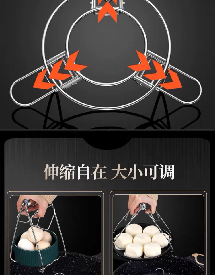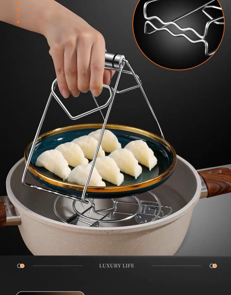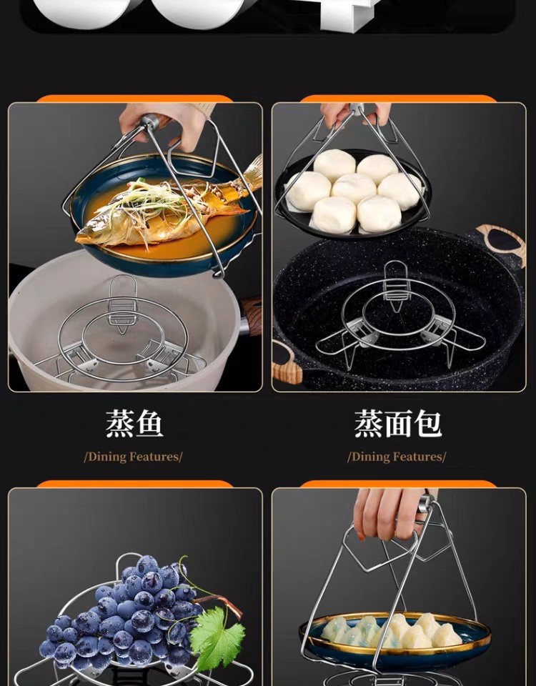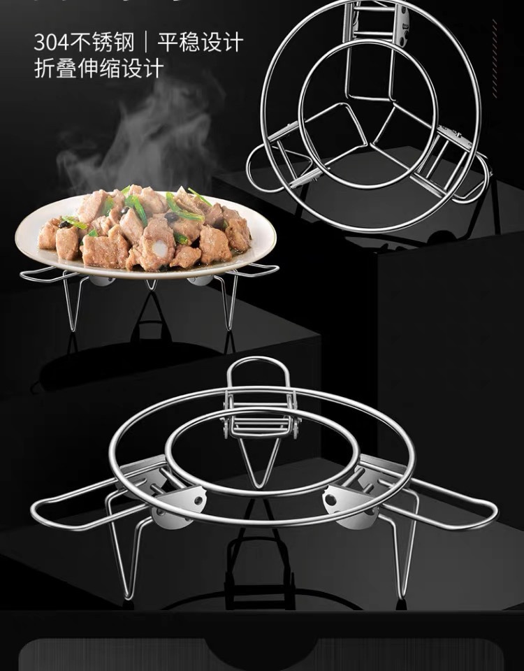 304ステンレス蒸し器折りたたみ式伸縮式蒸し器断熱隔水高脚多機能鍋パッドラック