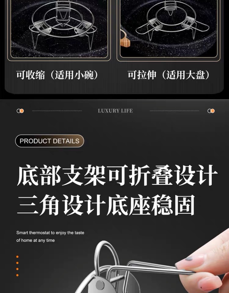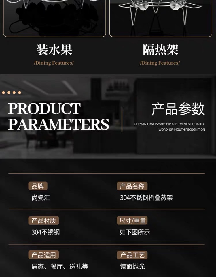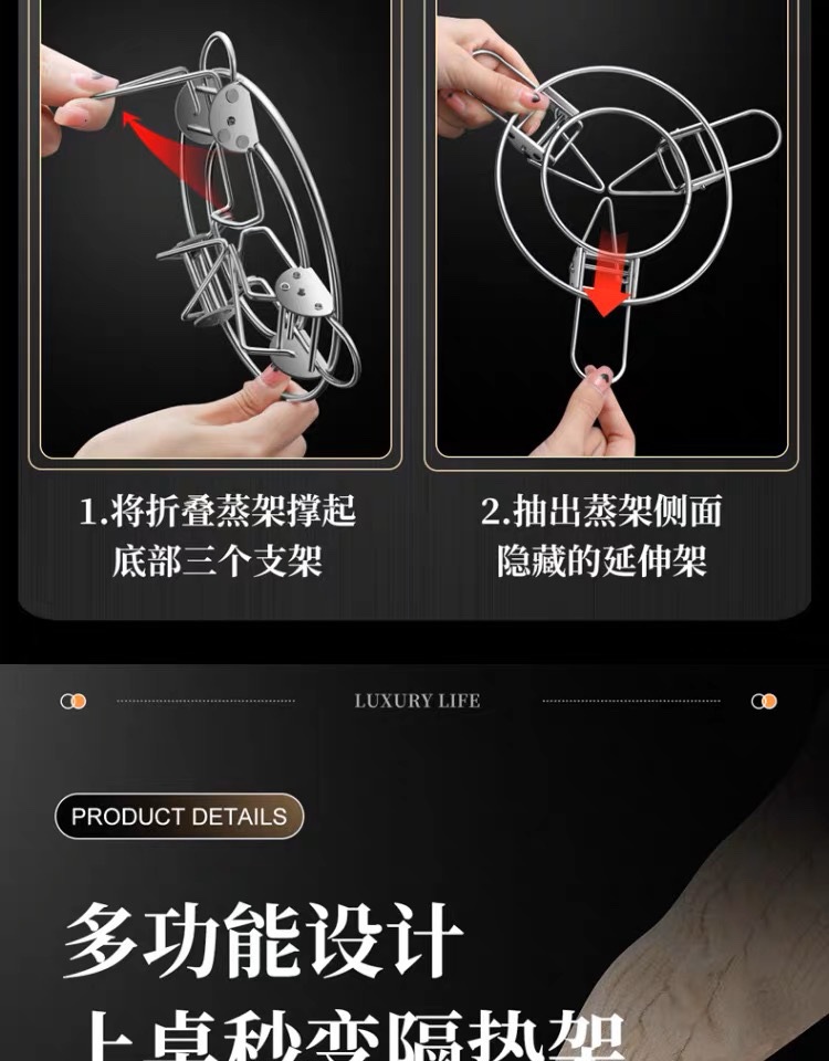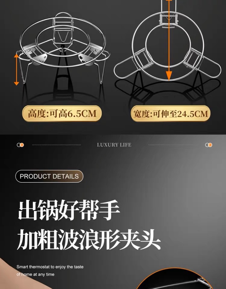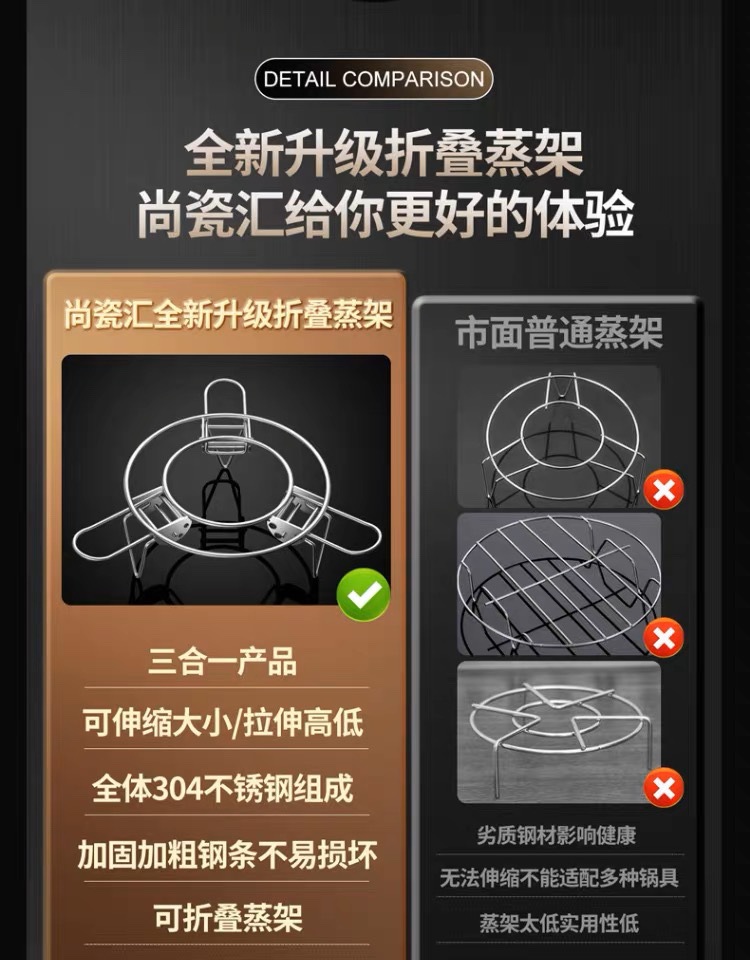 304ステンレス蒸し器折りたたみ式伸縮式蒸し器断熱隔水高脚多機能鍋パッドラック