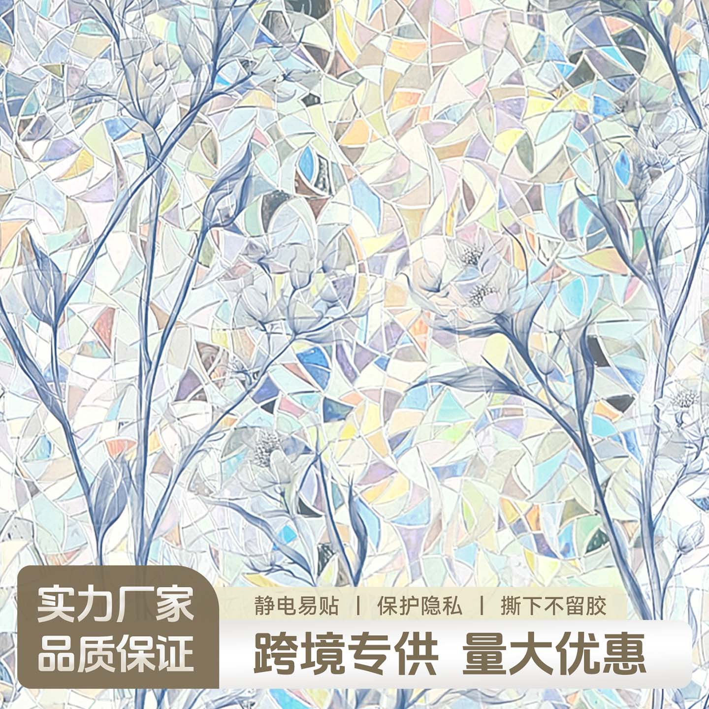 遮光防窥镭射膜3d炫彩静电免胶透光不透明玻璃贴膜玻璃贴纸批发