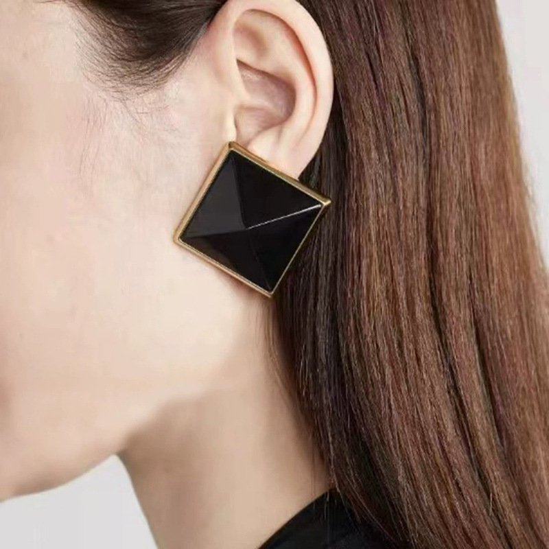 欧美复古轻奢简约塔尖菱形树脂方形耳环百搭时尚气质高级感耳钉女