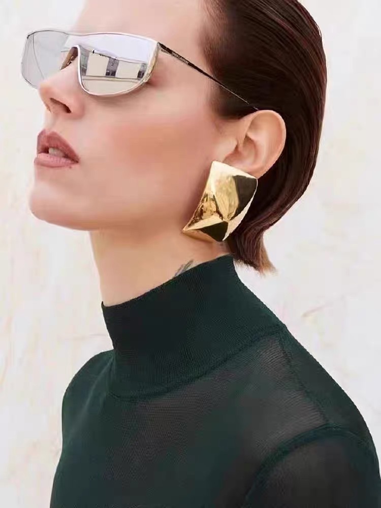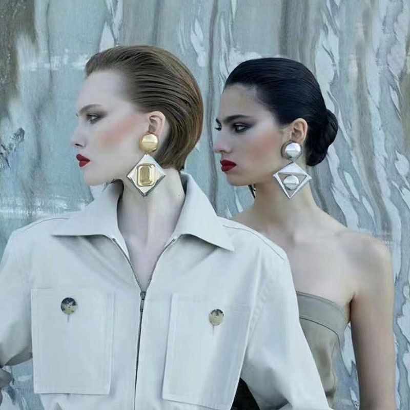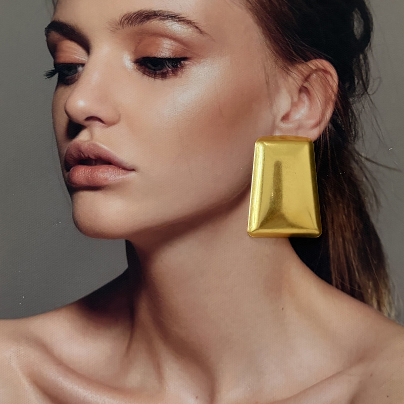 欧美小众夸张金属冷淡风几何三角梯形耳环时髦简约复古气质耳饰女