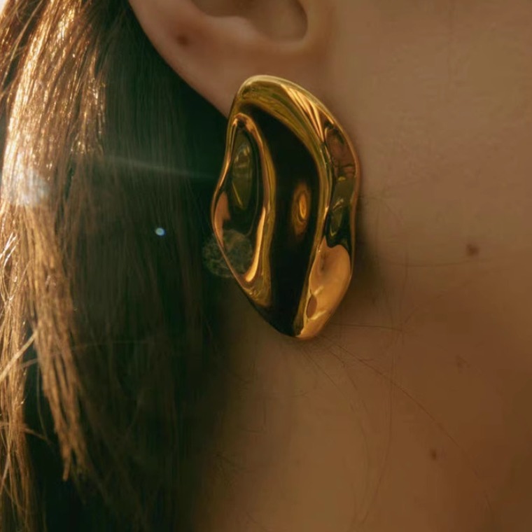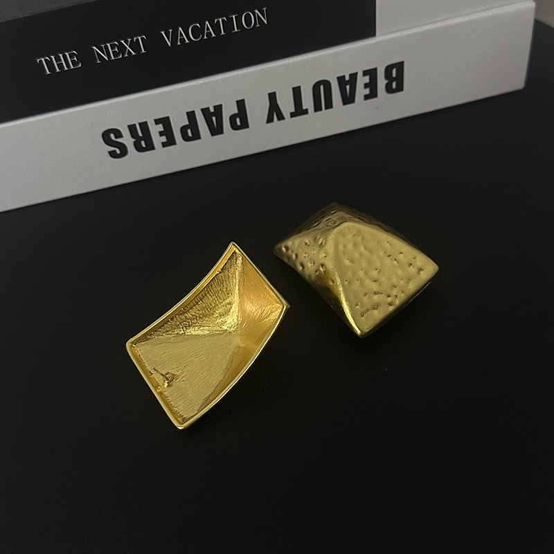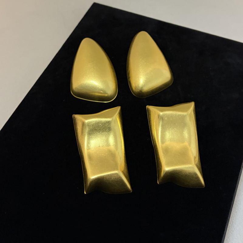 欧美小众设计复古亮面金属几何方形水滴耳环轻奢个性时尚精致耳饰