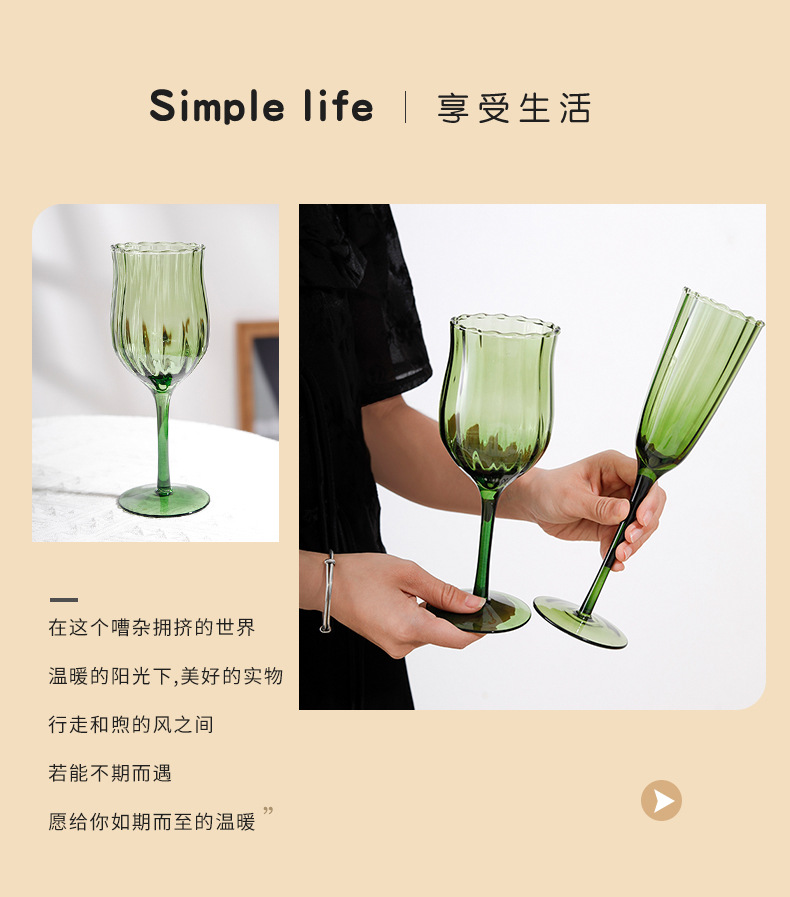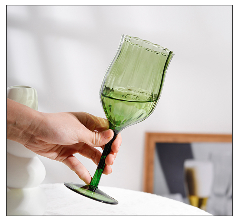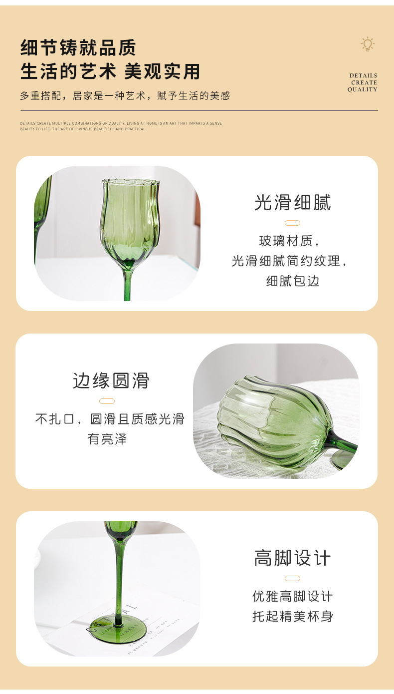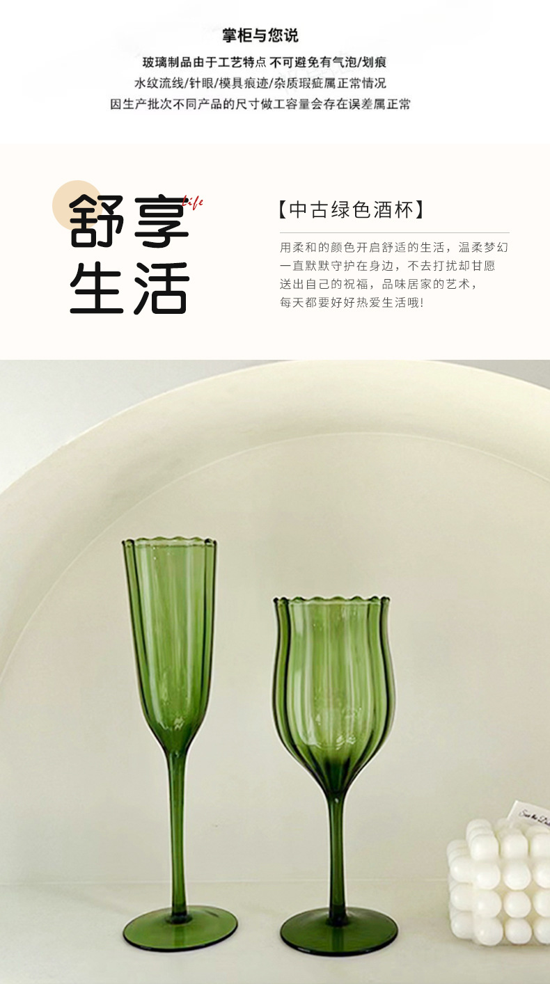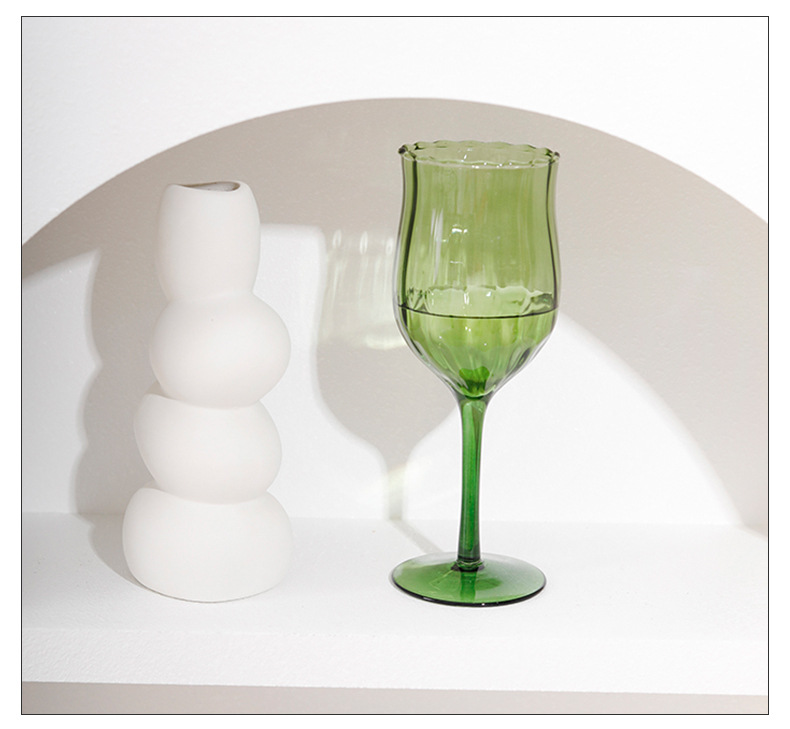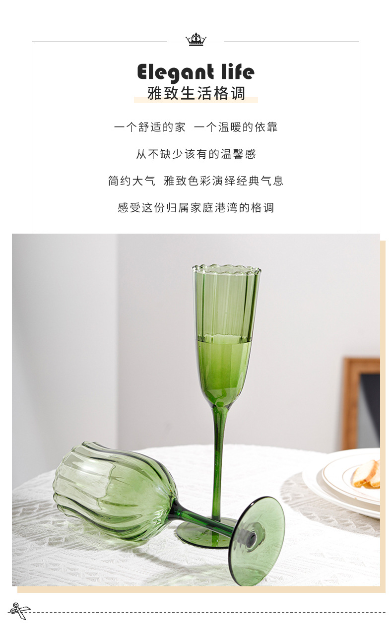 フランス無鉛ガラスシャンパングリーン高足カップ復古風花びらグラス軽贅沢レース口紅グラス卸売り