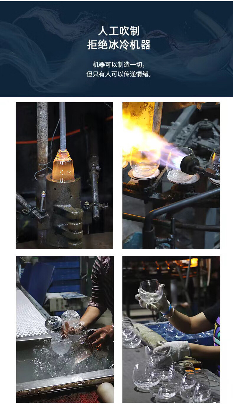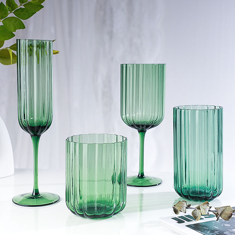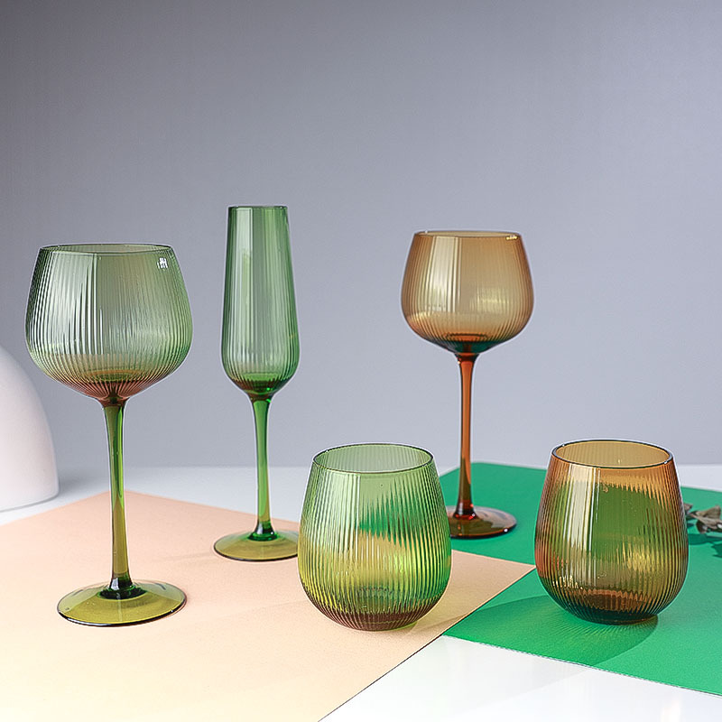 工厂直售原色料多彩人工吹制竖纹水晶玻璃红酒杯/香槟杯/水杯套装