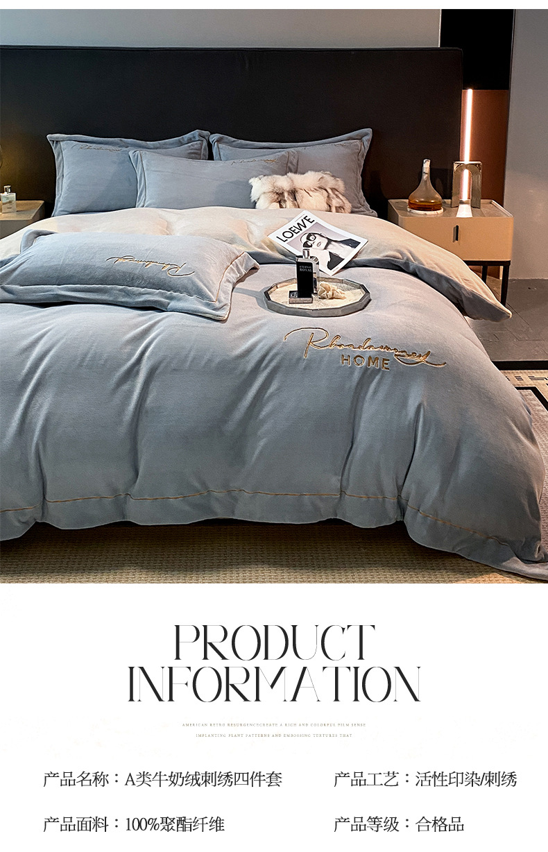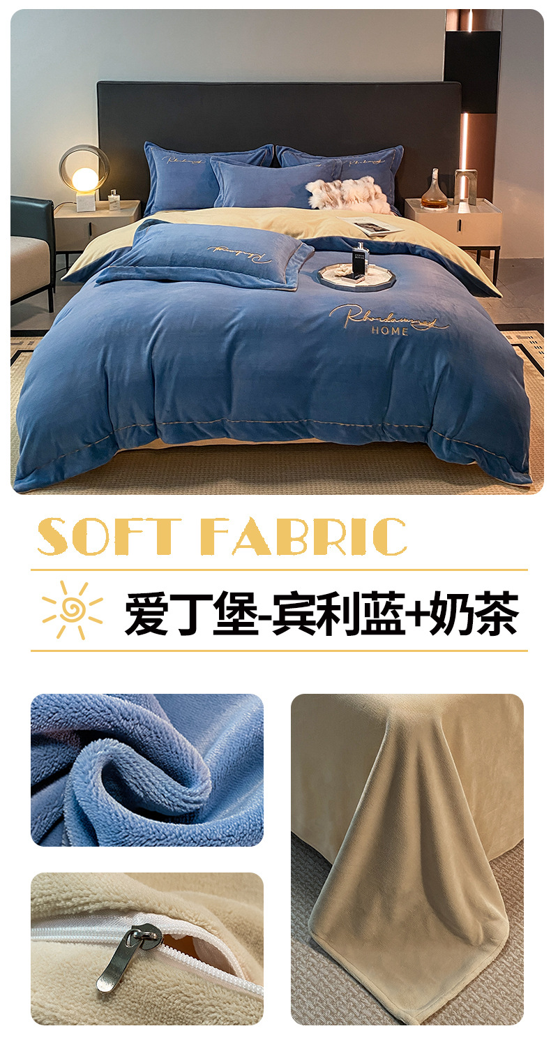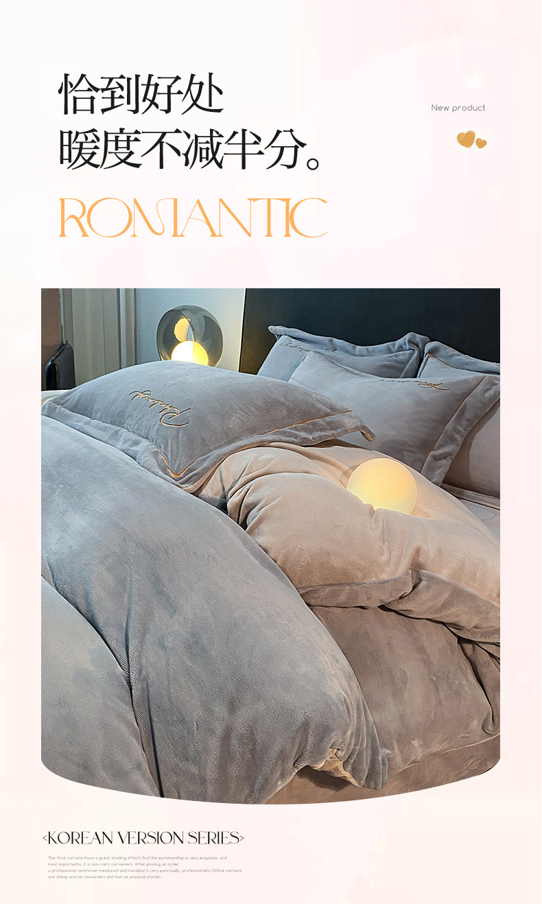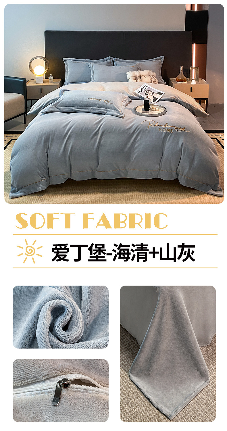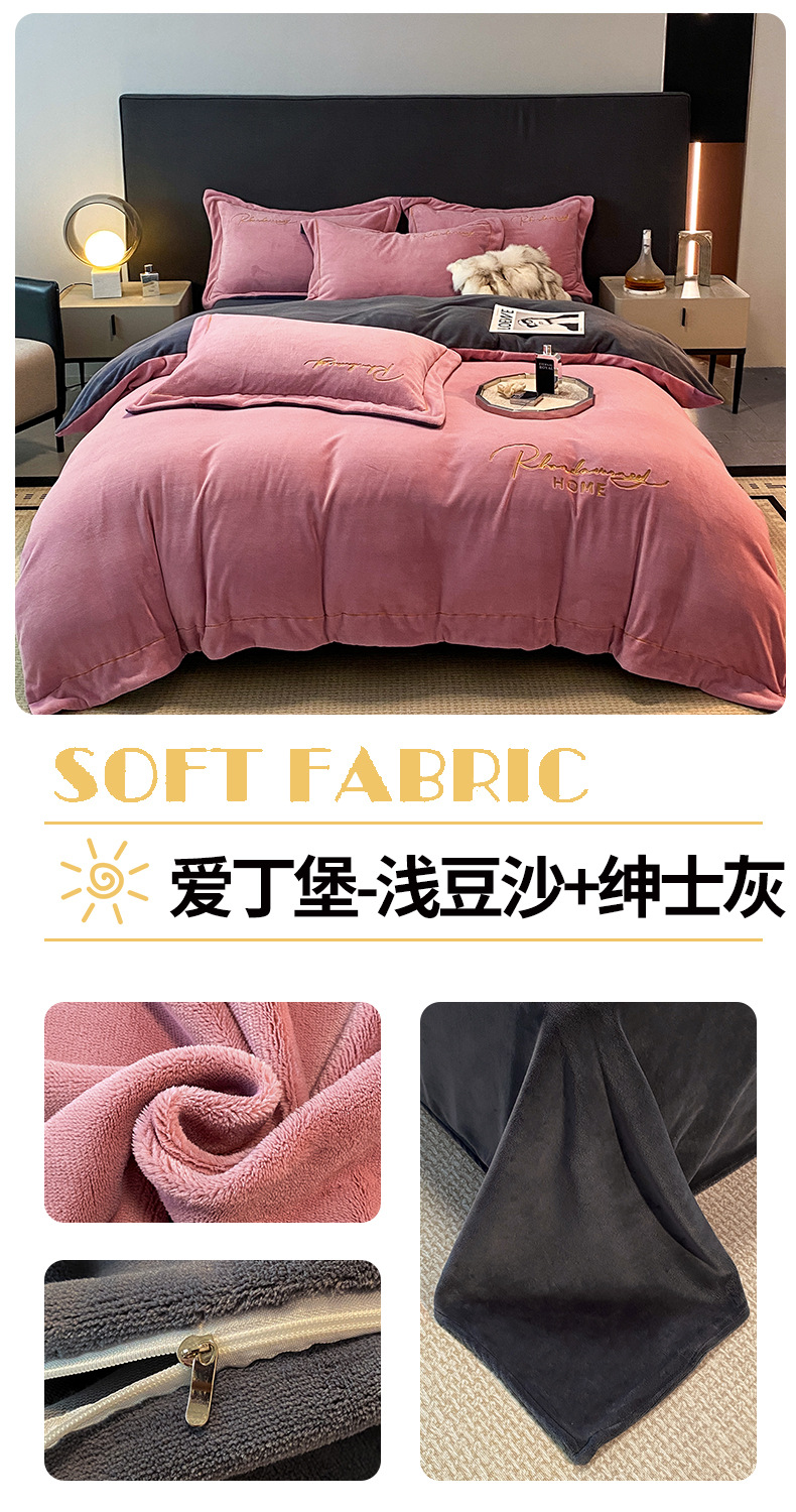 南通家紡秋冬の両面に毛を厚くする4点セットのシーツのベッドカバーはシンプルな純色の寝具です。