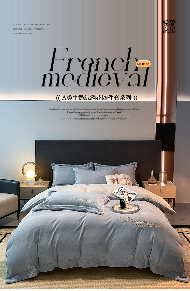 秋冬季公主风花边床上牛奶绒四件套床品双面绒被套加绒珊瑚绒床单