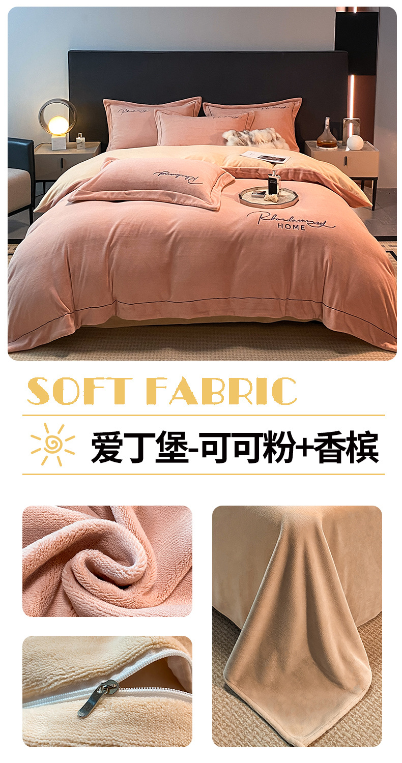 フランスの高級牛乳の毛の四つのセットのサンゴの毛の冬の保温の布団は厚くて柔らかいです。