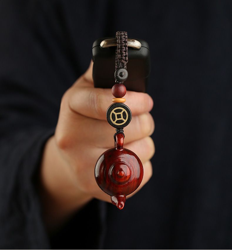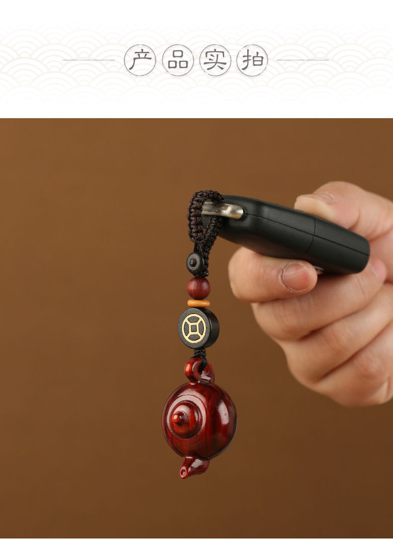 檀木転銭福袋自動車キーホルダー男女創意六字真言銭袋鍵掛けストラップ
