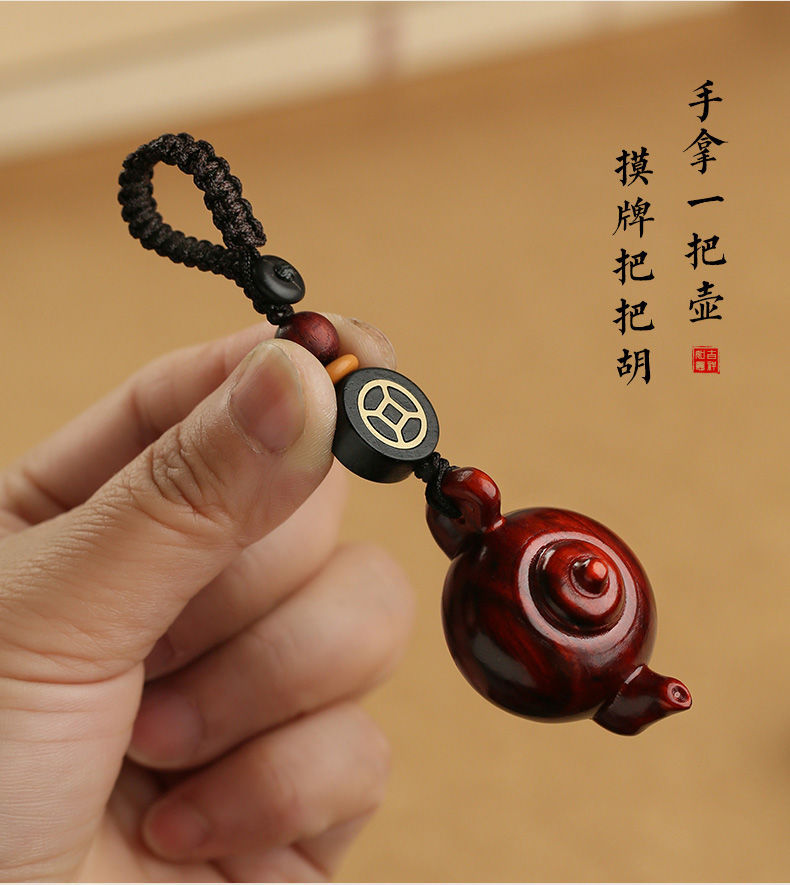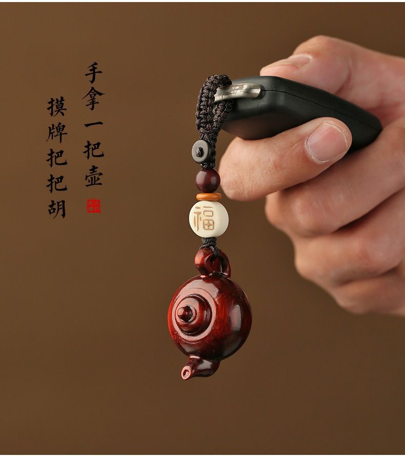 元夢黒檀木子猫車の鍵ストラップ携帯チェーンバッグ掛けキーホルダー男プレゼント