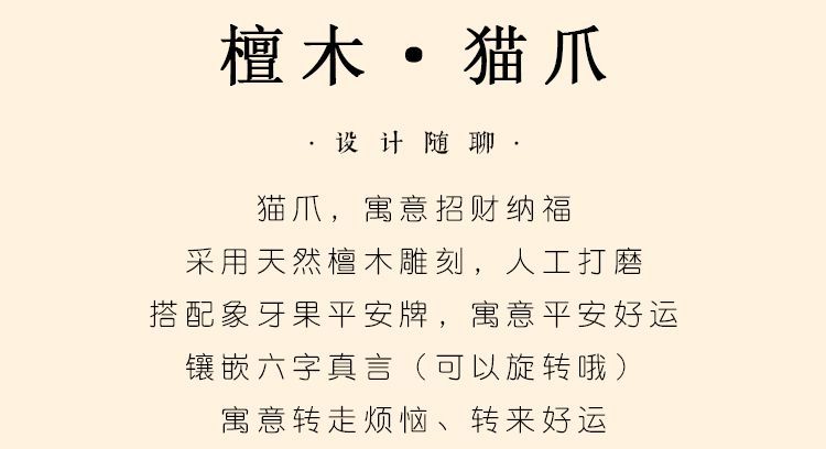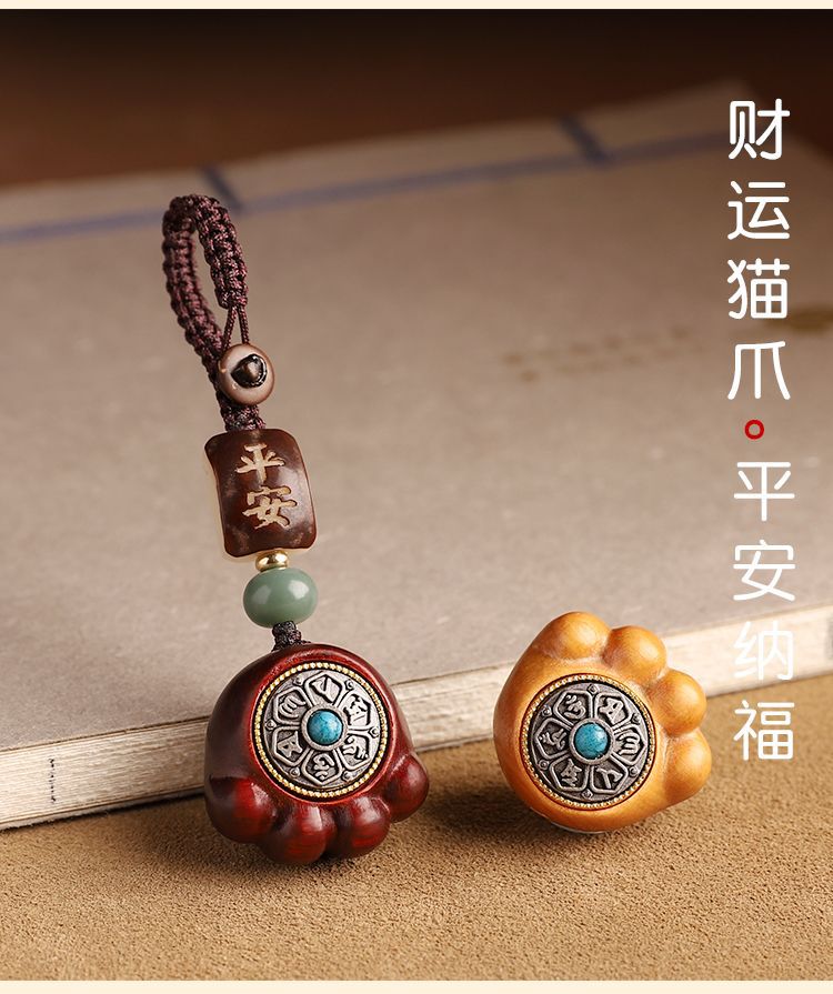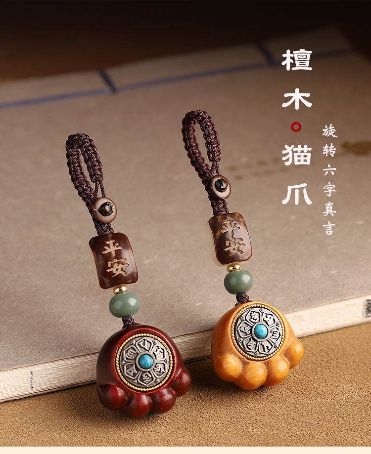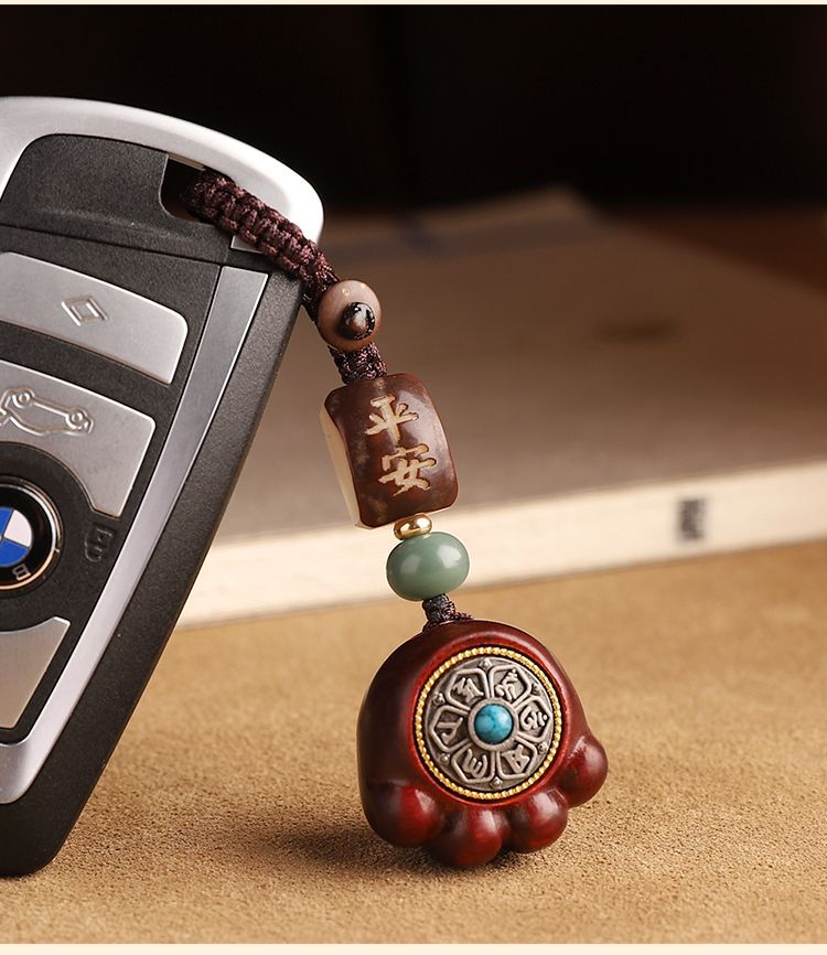 金儲け六字真言紫檀木猫爪自動車のキーホルダー