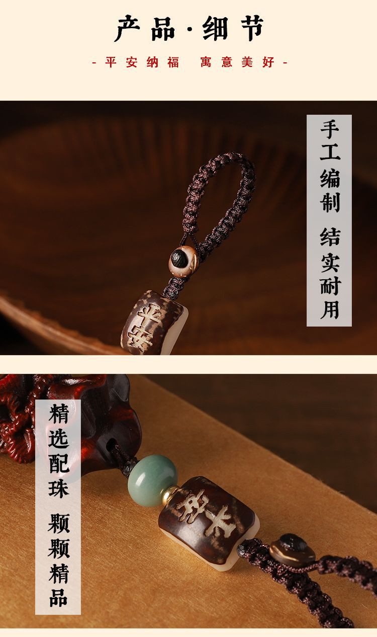 元夢黒檀木子猫車の鍵ストラップ携帯チェーンバッグ掛けキーホルダー男プレゼント