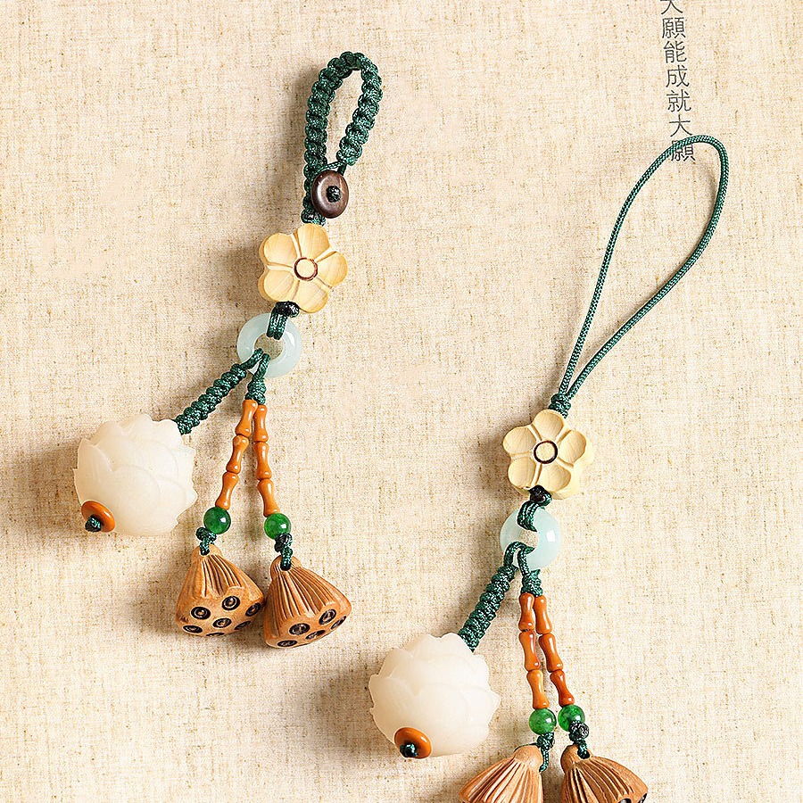 樹脂模造菩提根蓮車のキーホルダーペンダントピーチウッド蓮かわいい携帯電話チェーン小さなペンダント男性と女性のペンダント