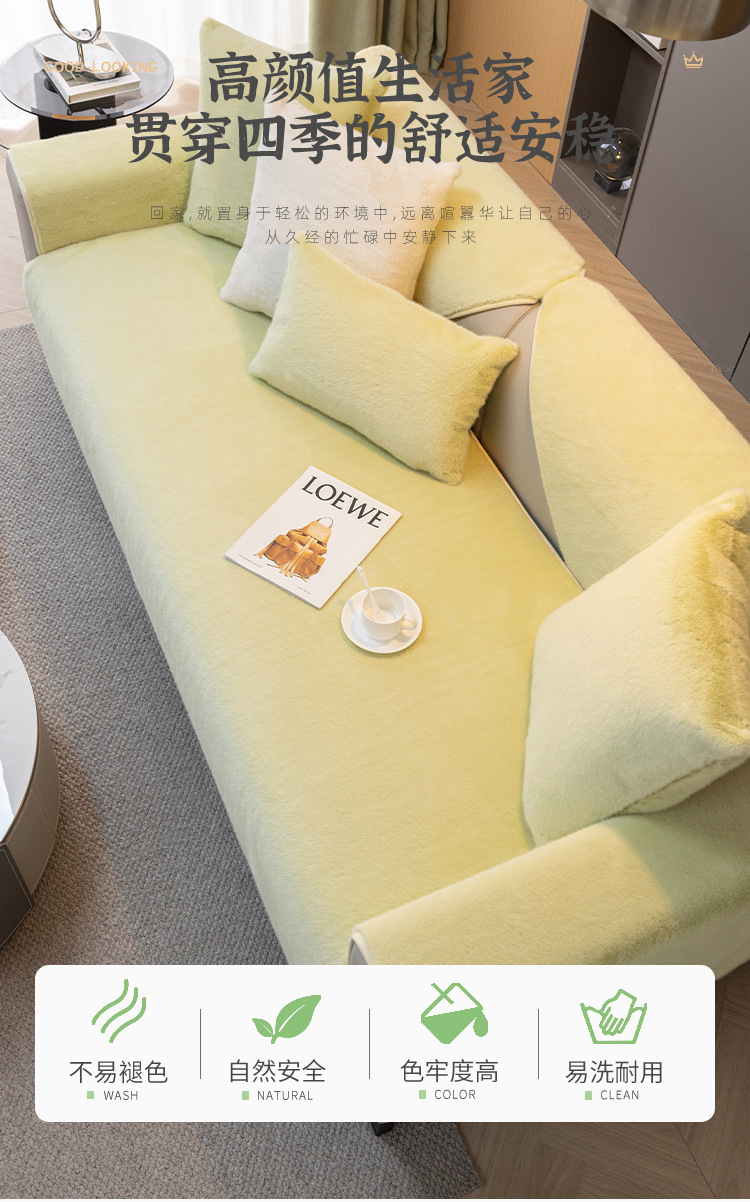 猫感米ミンクのソファーマット2023冬の新型は滑り止め冬の保温マットカバー布を厚くする