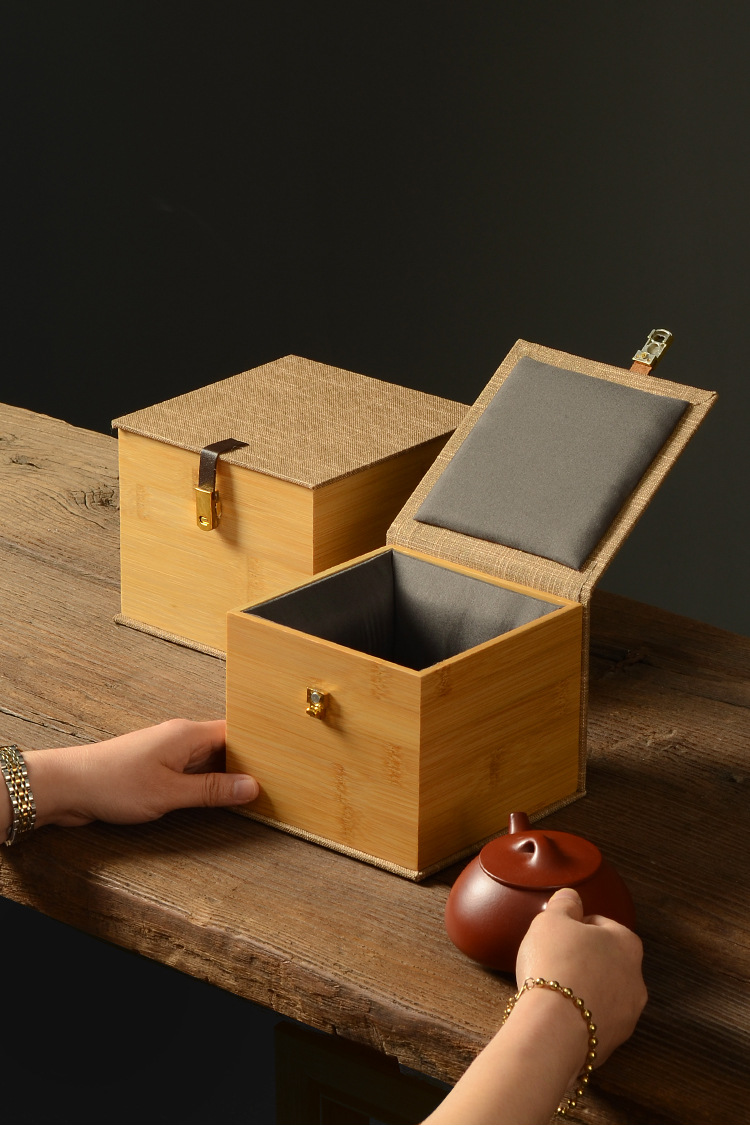 ベルトバックル磁気吸竹布ボックス紫砂壷建杯品茗茶碗錦箱陶磁器正方形収納ギフトボックス