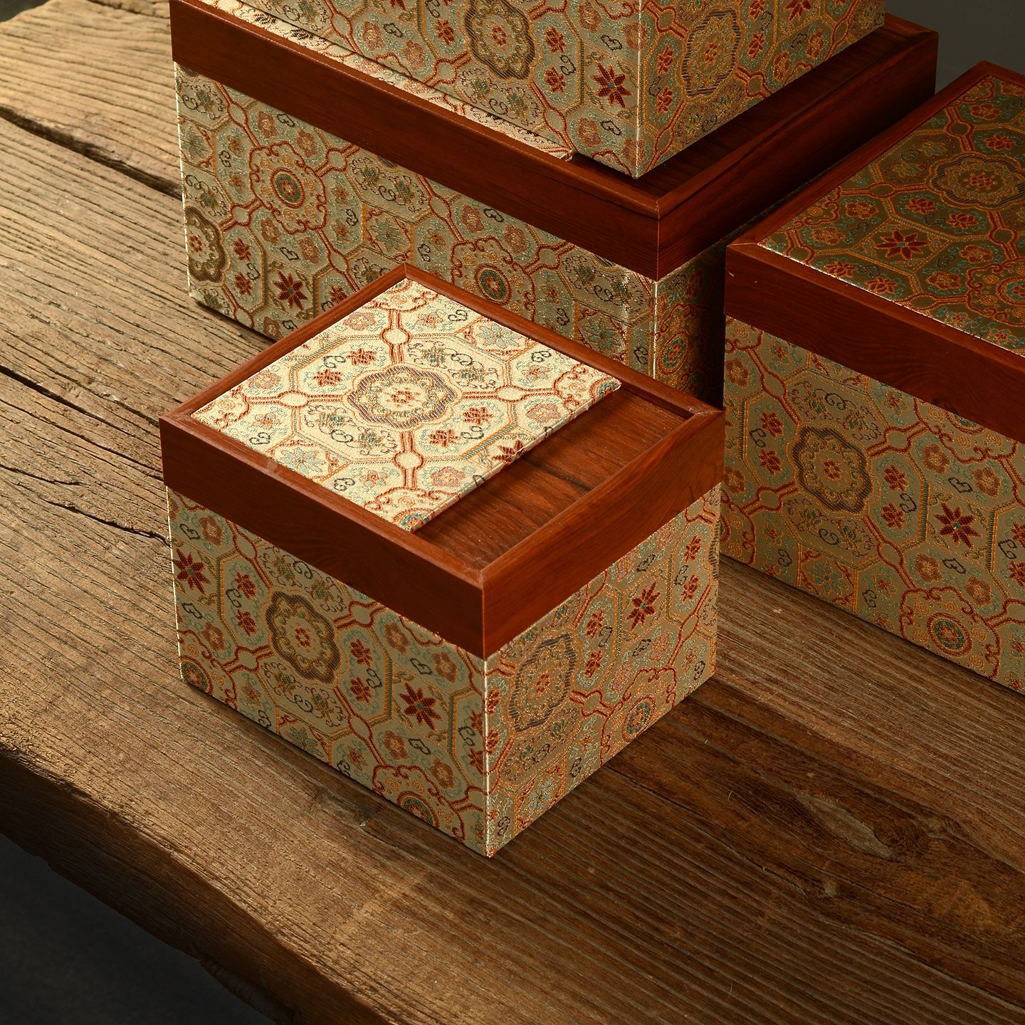 宋锦木纹锦盒高档包装盒古风中式茶具紫砂通用盒子长方形礼盒