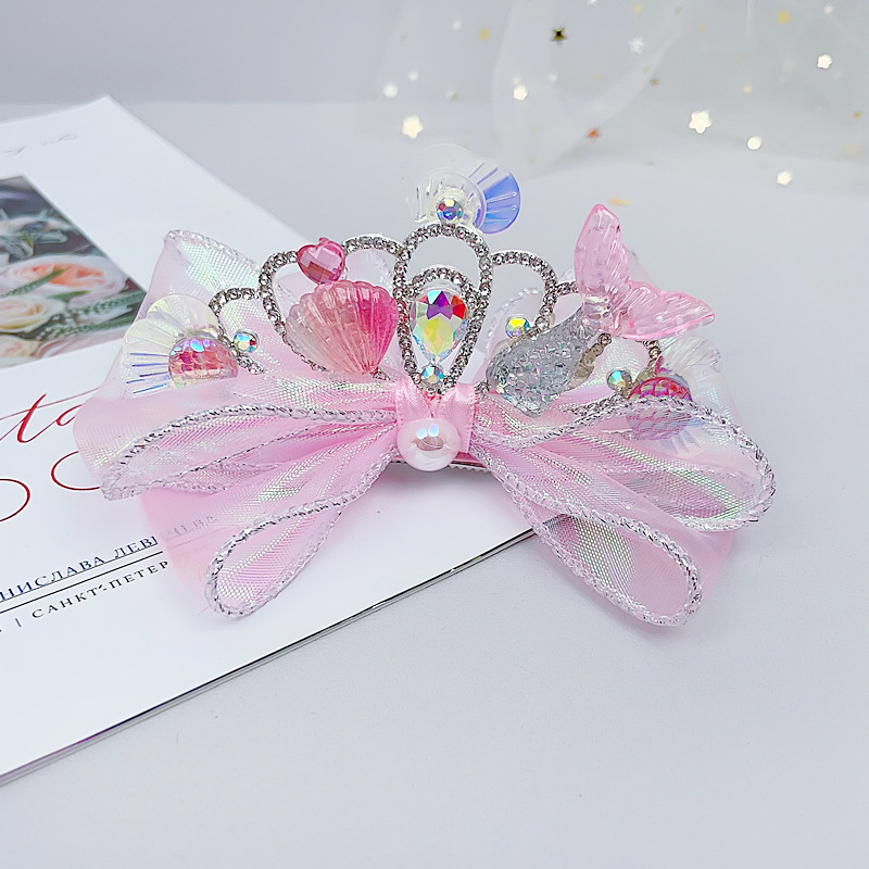女の子人鱼姫ちょう结びヘアクリップマーメイド夏点灯头饰り子供お団子头ランプ付きプリンセス额り