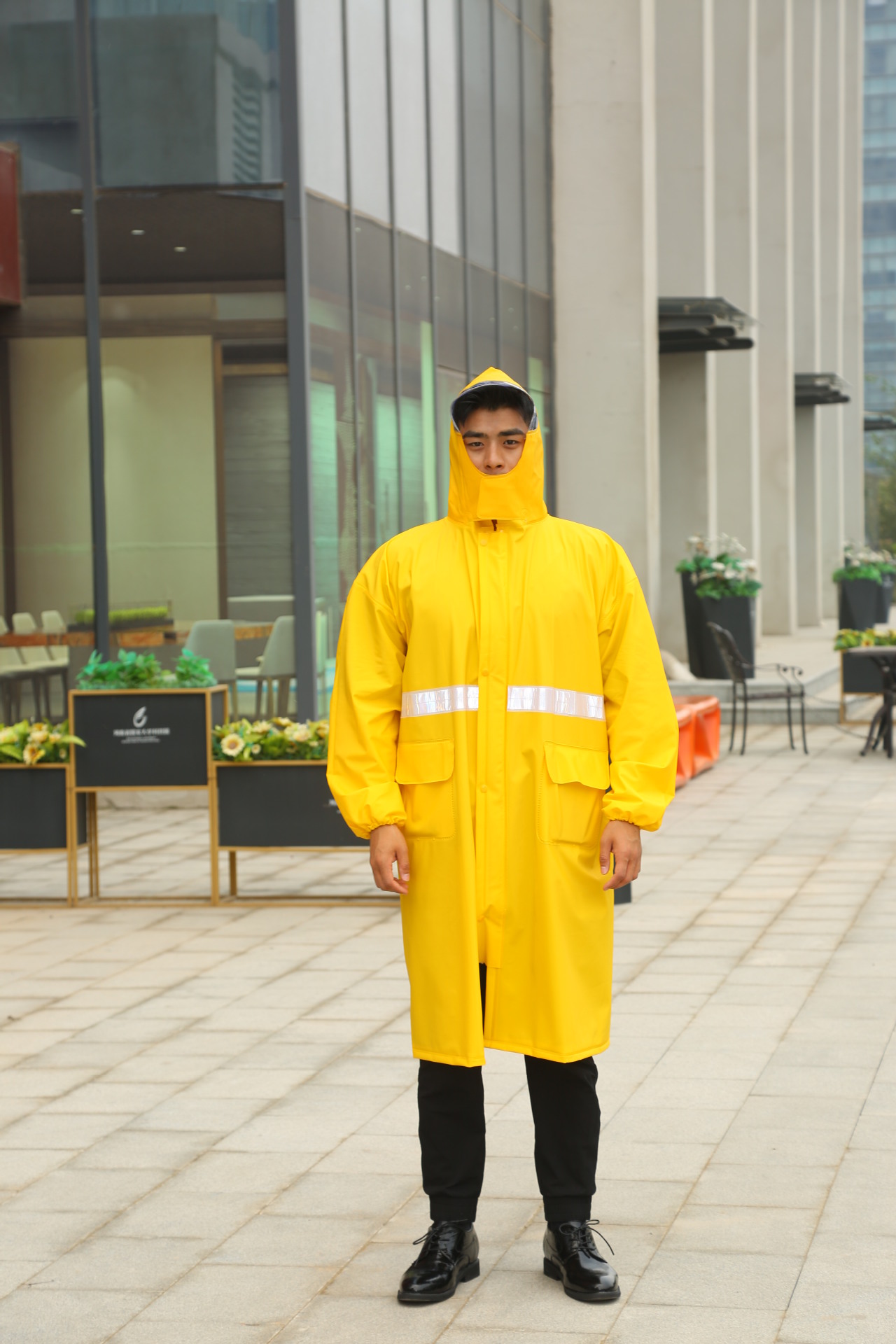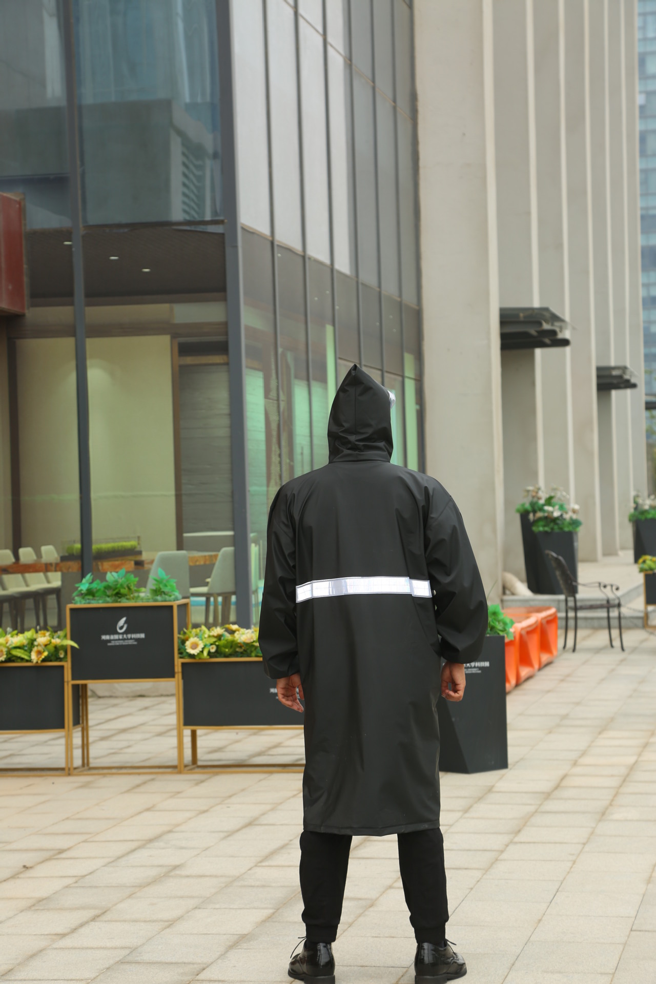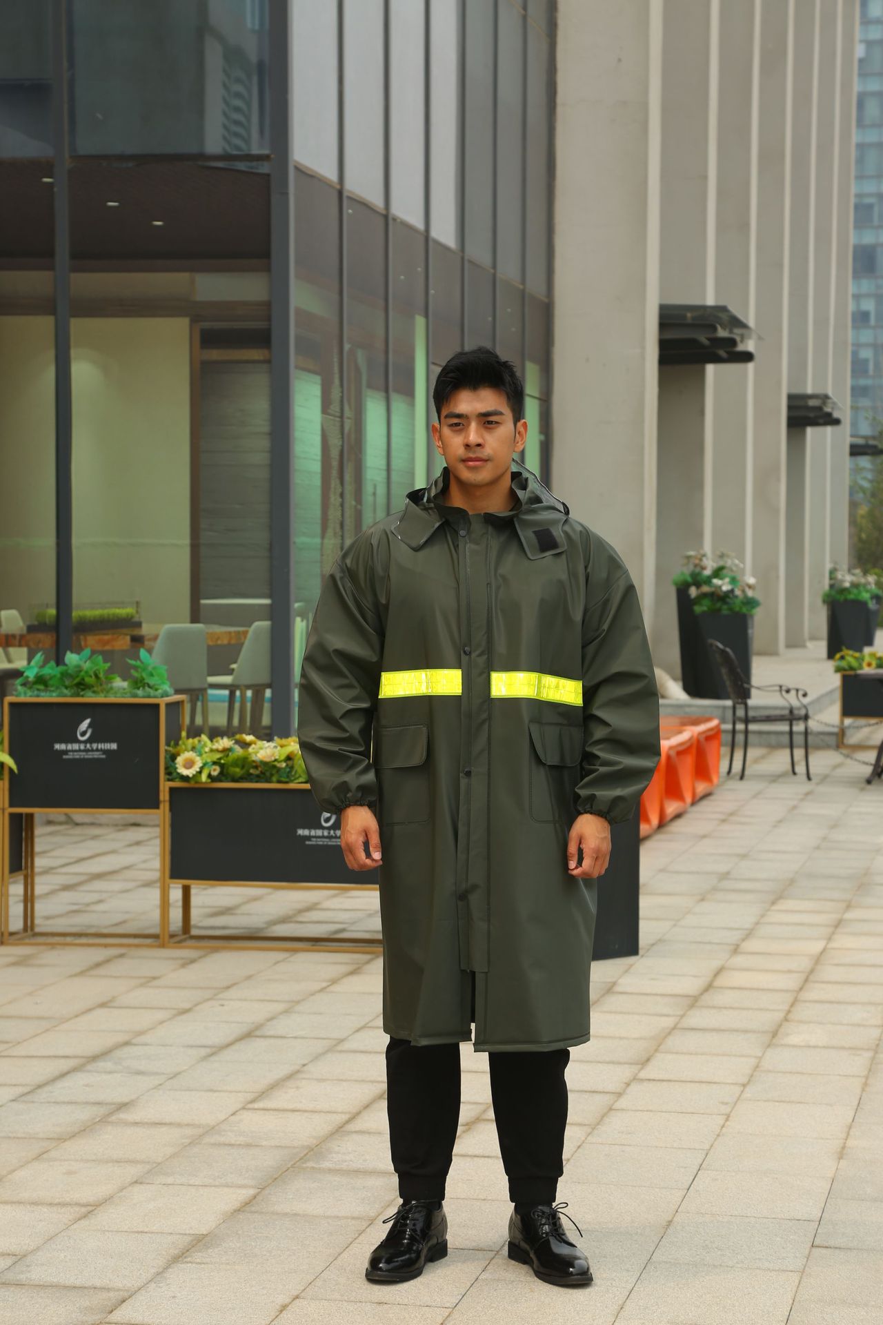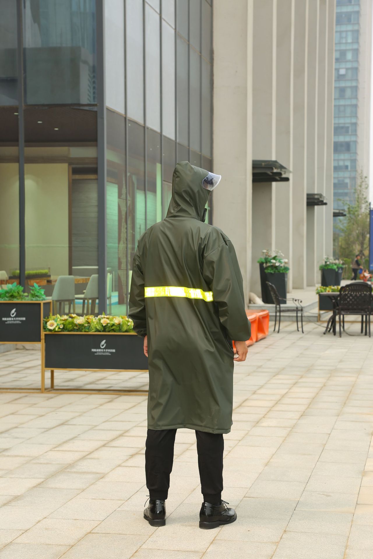連体レインコートを長くして、アウトドアガードの通勤交通勤務を厚くします。