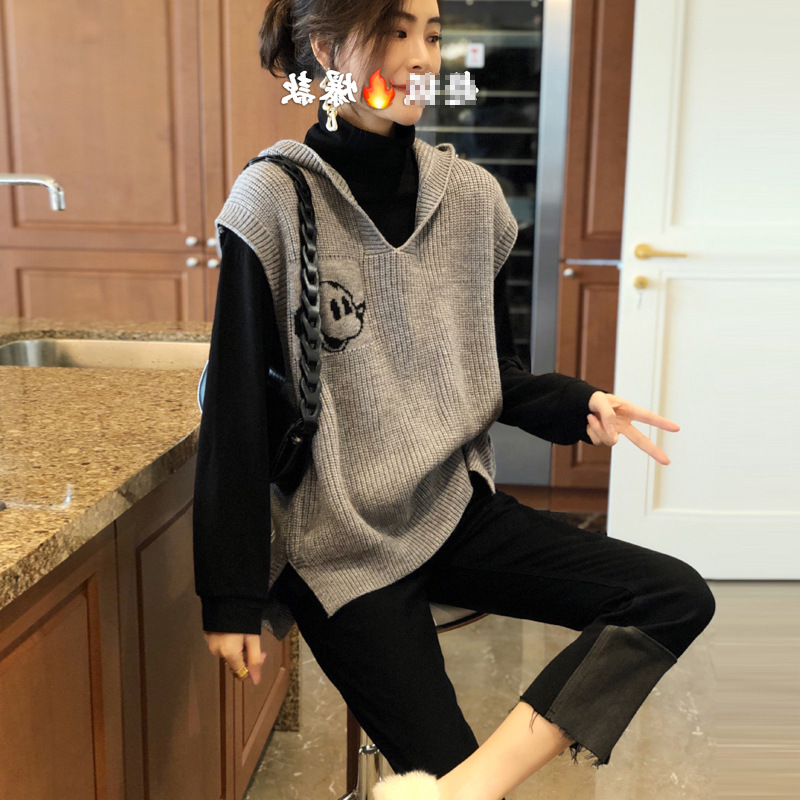春と秋の2024年に新たに起爆した婦人服の欧品上着の肩と帽子の馬甲のニットベストヨーロッパ駅のセーター