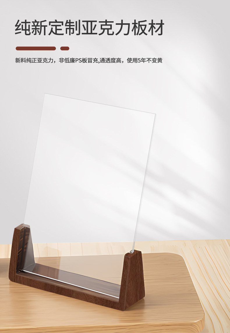 Xy bp木の台座のテーブルの札のレストランのデスクトップのA4価格表の展示札のA5原木のアクリルの台カード