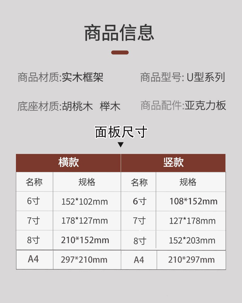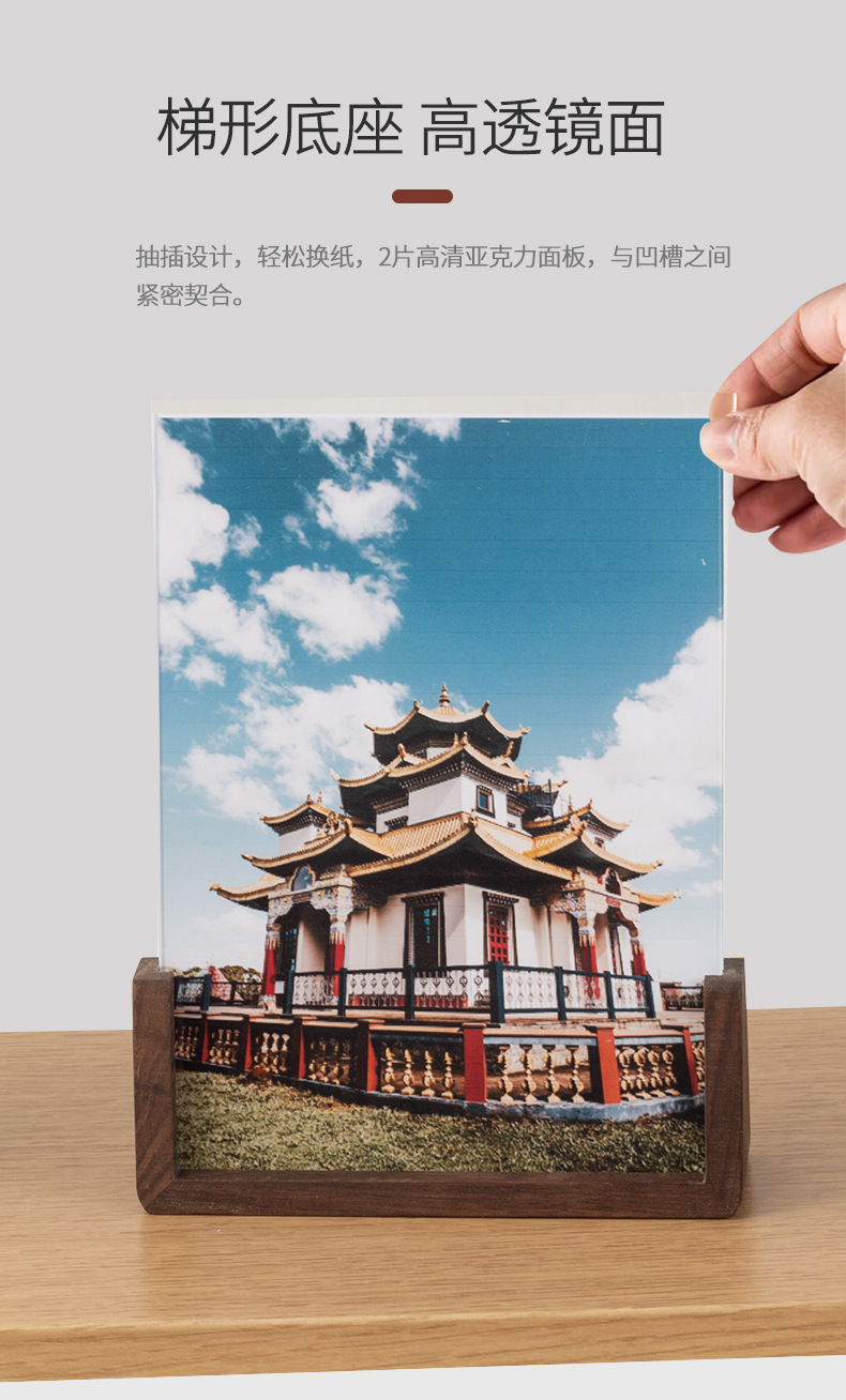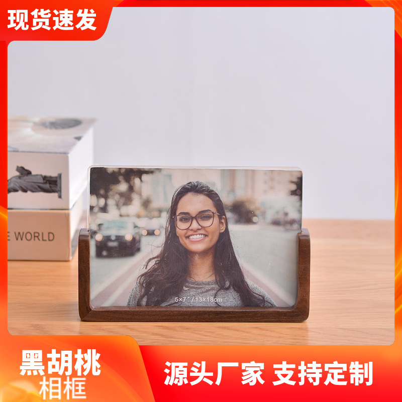 U型アクリルフォトフレーム実木ベース胡桃木6インチ7インチフォトフレーム
