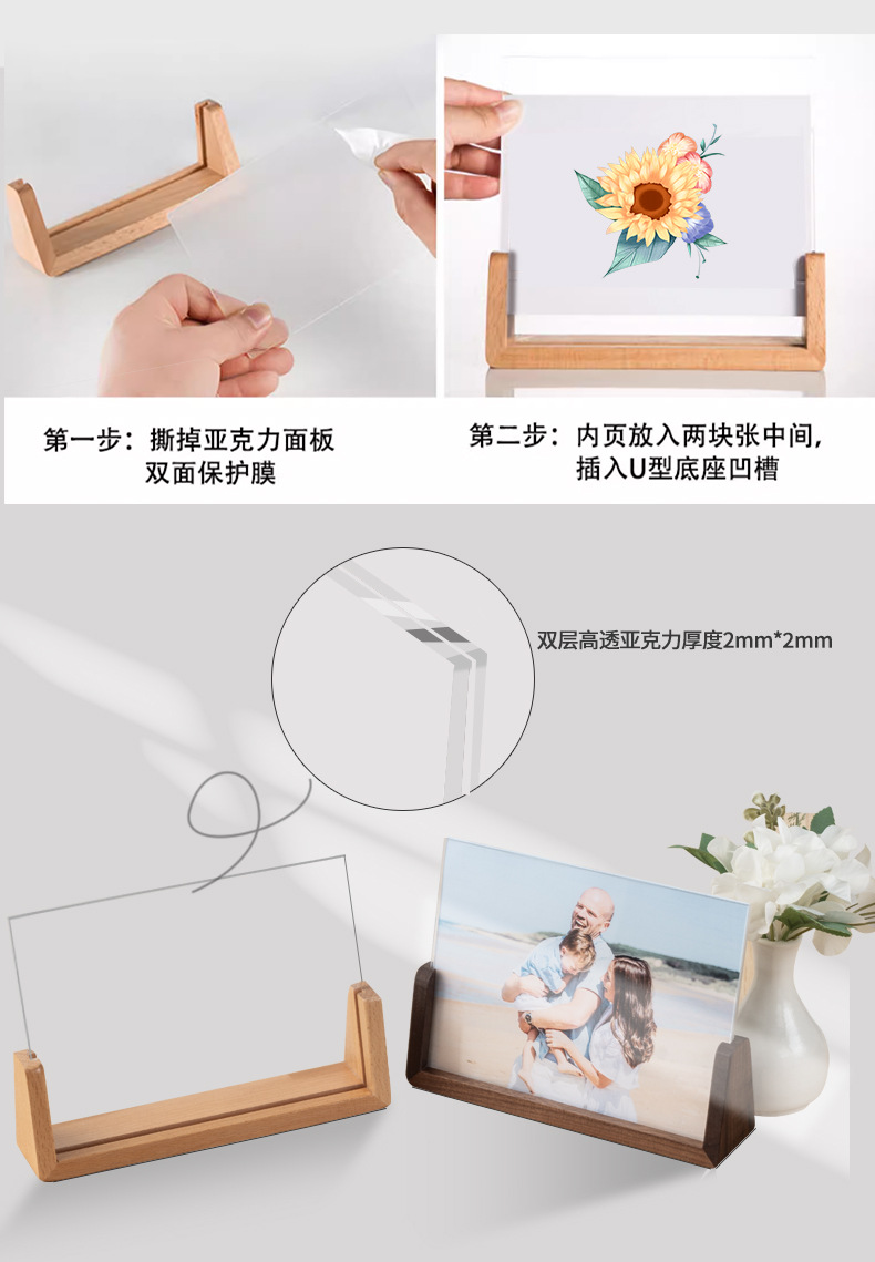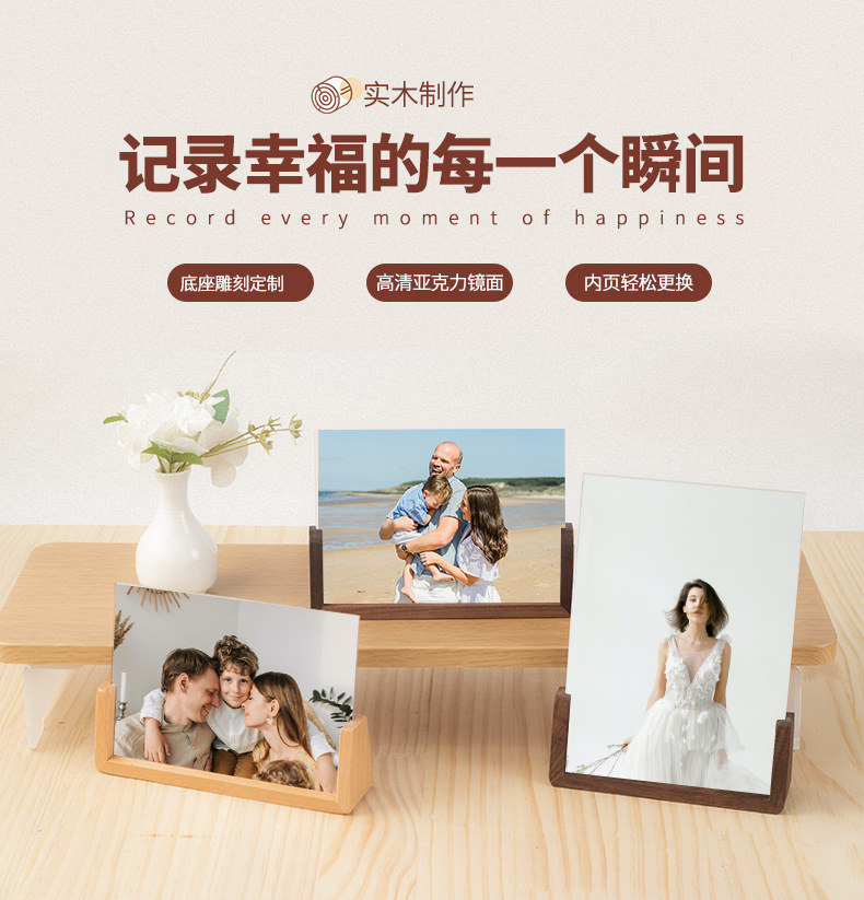 アクリル実木フォトフレームクロスボーダーデスクトップ置物工芸創意プレゼント展示78インチu型フォトフレームカスタマイズ