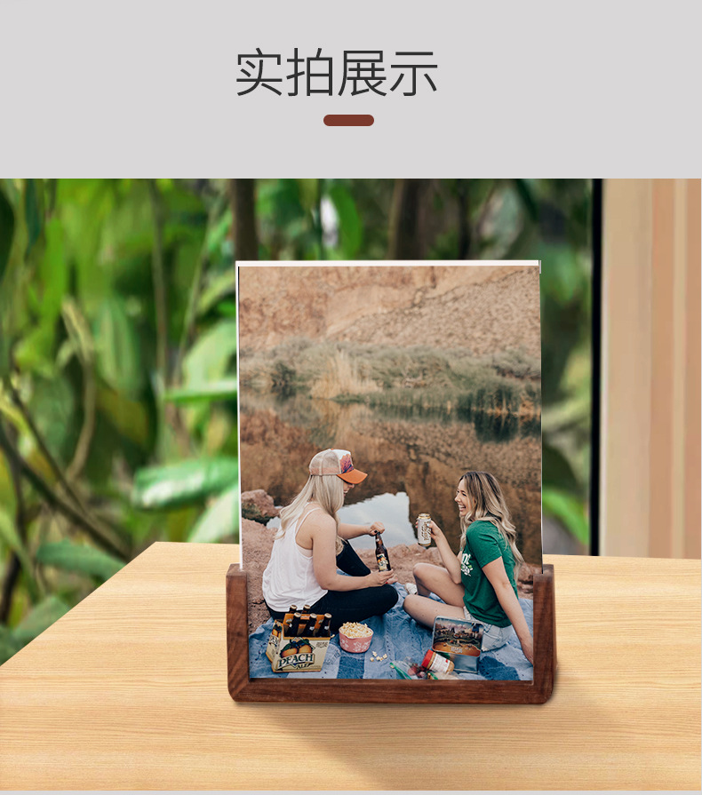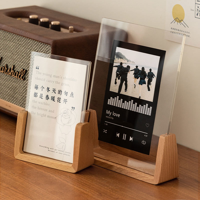 高級無垢材フォトフレーム卓上スタンド、高級感6インチ7inch 8inch、軽奢風insアクリル木製U字型クリエイティブ