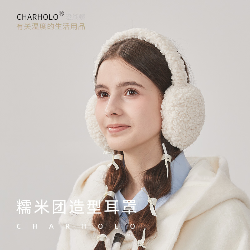 シャルホロ 冬用保温イヤーマフ イヤーバッグ 在庫あり 厚手 レディース 韓国風 可愛い ふわふわイヤーマフ シャネル風イヤーマフ