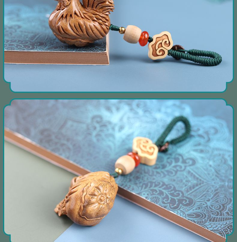 緑檀木の国風の復古の生肖の雄鶏の雄鶏は車のキーチェーンの包みを知っています。