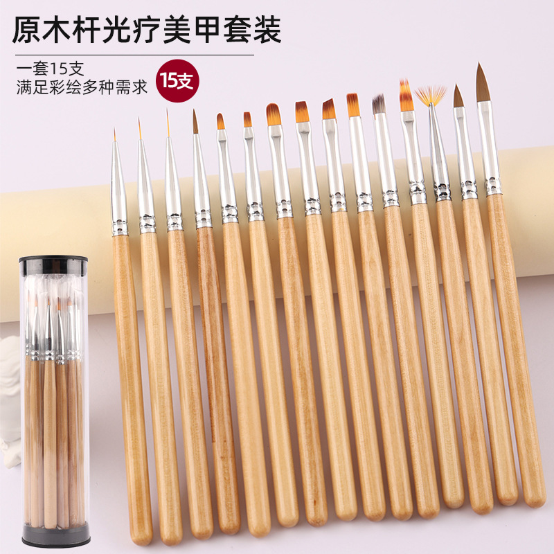 和風木製ネイルアートペン専用ブラシセット15本入り 初心者向け光線療法ラインペン機能付きカラーペイントフラワーツール