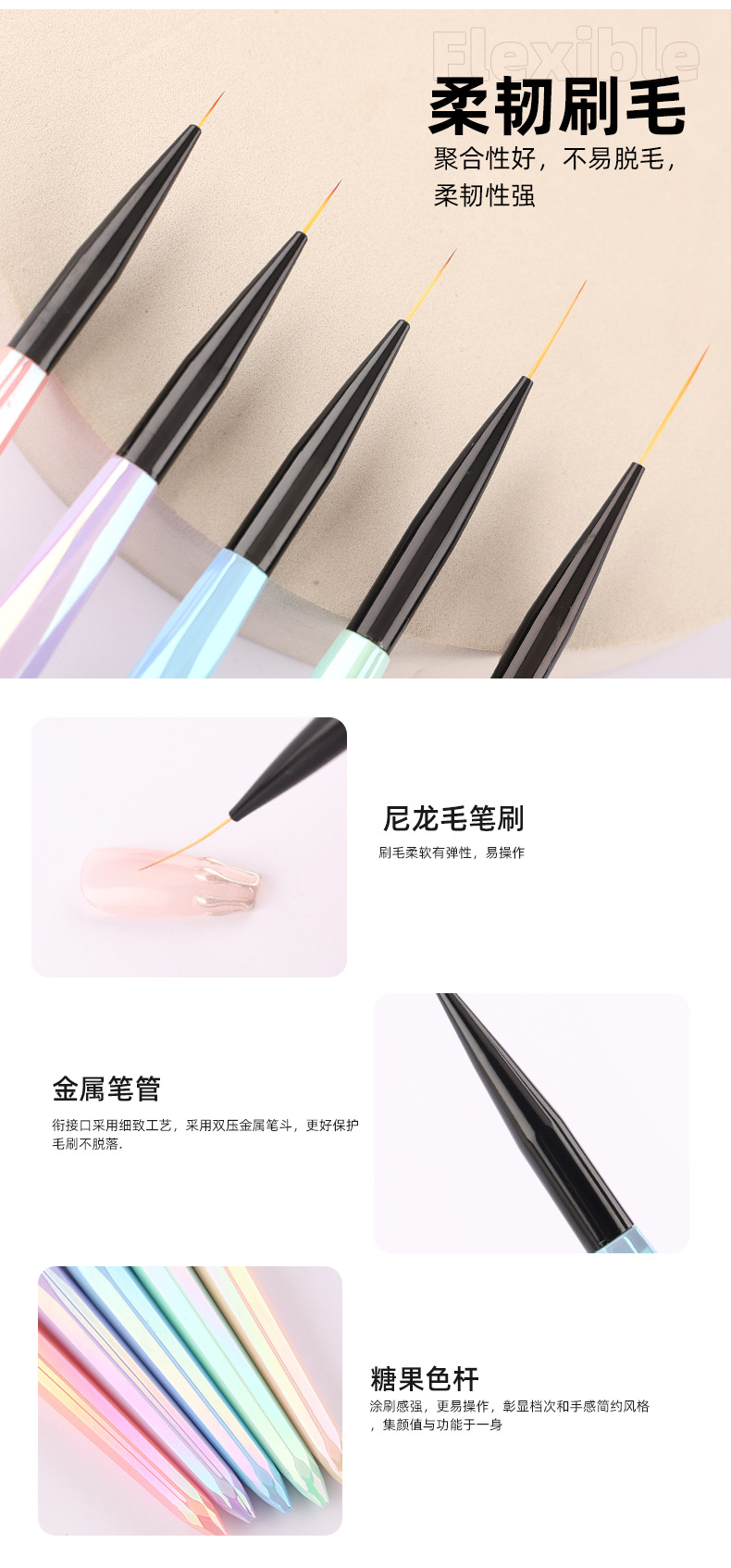クロスボーダーメタルポールマニキュアラインペン極細5本セット和風塗装フラワーフックラインペンプルラインペンカスタマイズ