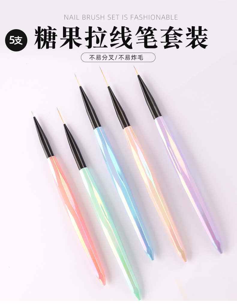 国境を越えた新型ネイルペンはマカロン色の絵の花のフックの線の筆の色絵のネイルペンの5本のセットです。